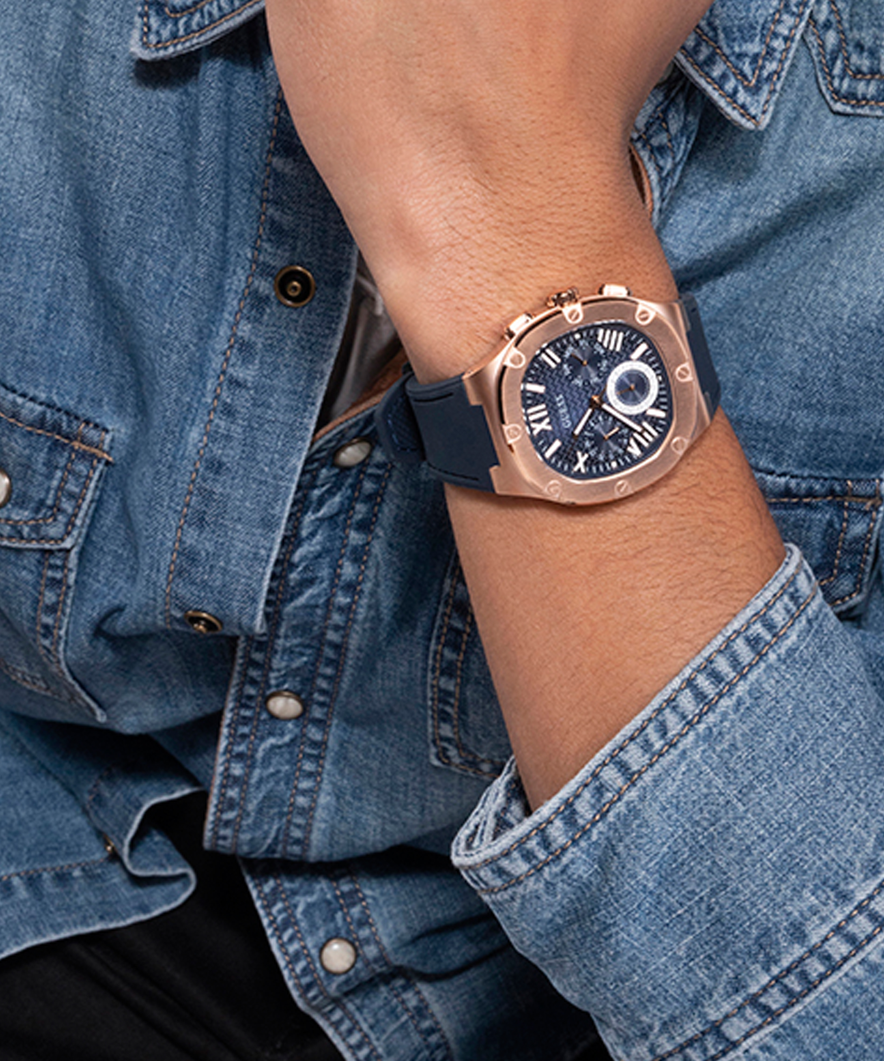 Оригинальные мужские наручные часы GUESS GW0571G2 оснащены кварцевым механизмом Miyota. Коллекция GUESS DRESS. Стальной с покрытием Rose Gold Tone корпус. Силиконовый браслет. Диаметр корпуса – 42 мм, толщина – 10,1 мм. Ширина крепления – 25 мм. Застежка – пряжка. Синий градиентный циферблат со стрелками с люминесцентным покрытием и дополнительными минициферблатами. Водозащита 5 АТМ.