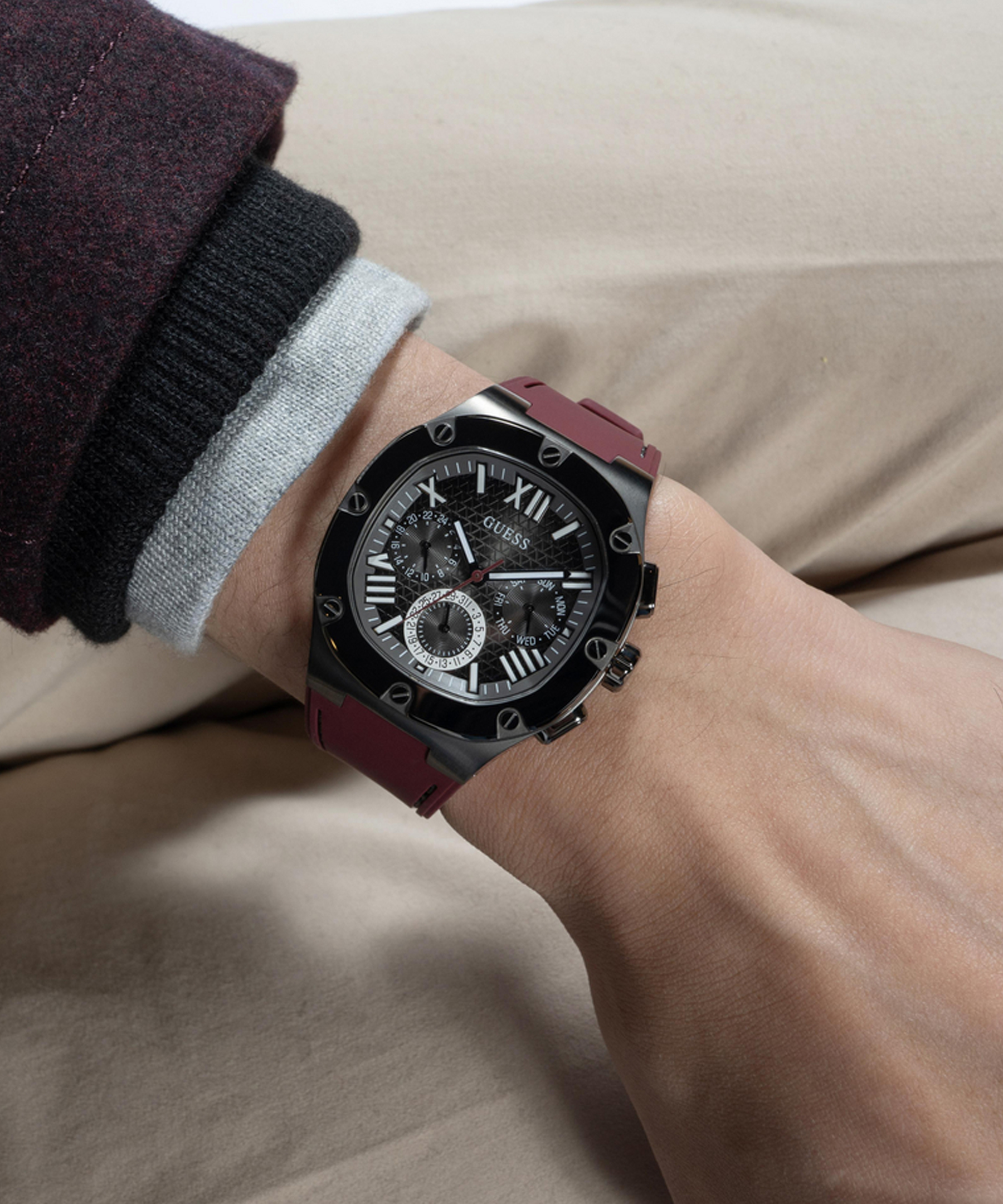 Часы мужские GUESS GW0571G4 точно привлекут внимание! Имеет уникальный округлый квадратный дизайн корпуса с винтовыми деталями и многофункциональный текстурированный циферблат с эффектом омбре. Диаметр корпуса – 42 мм. Водозащита – 5 АТМ.