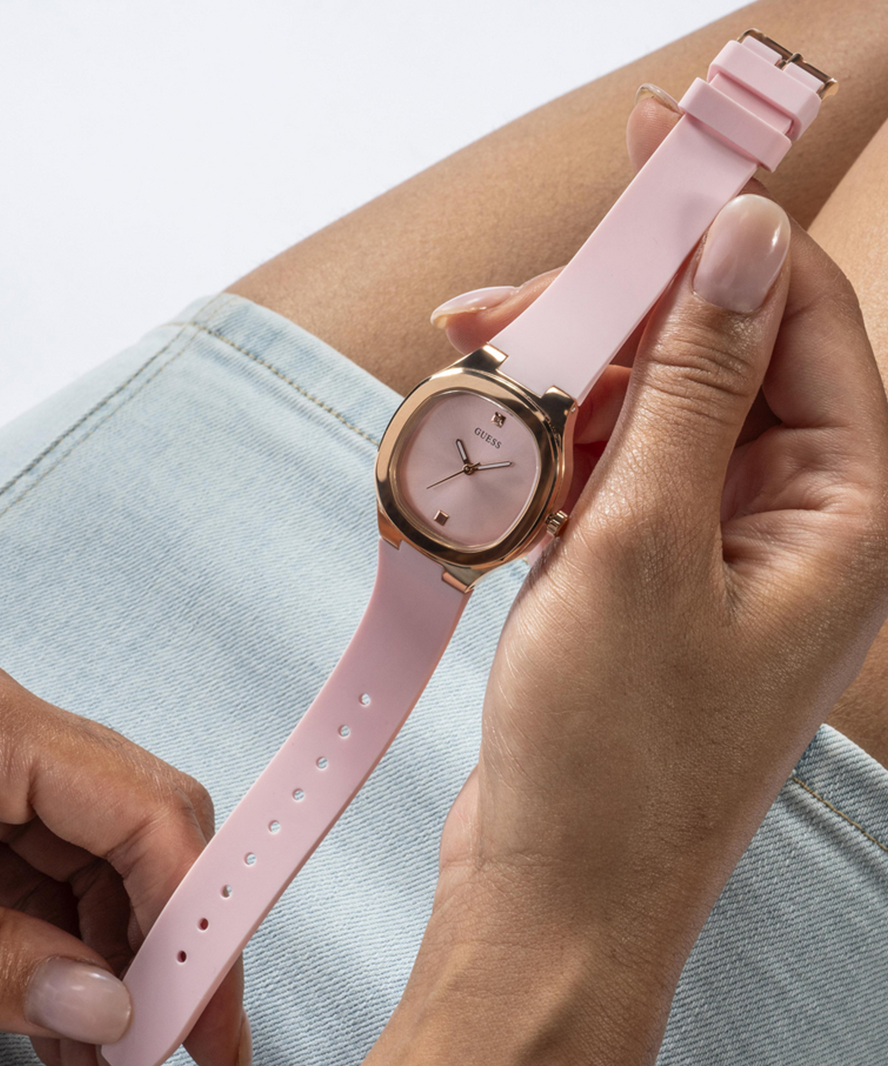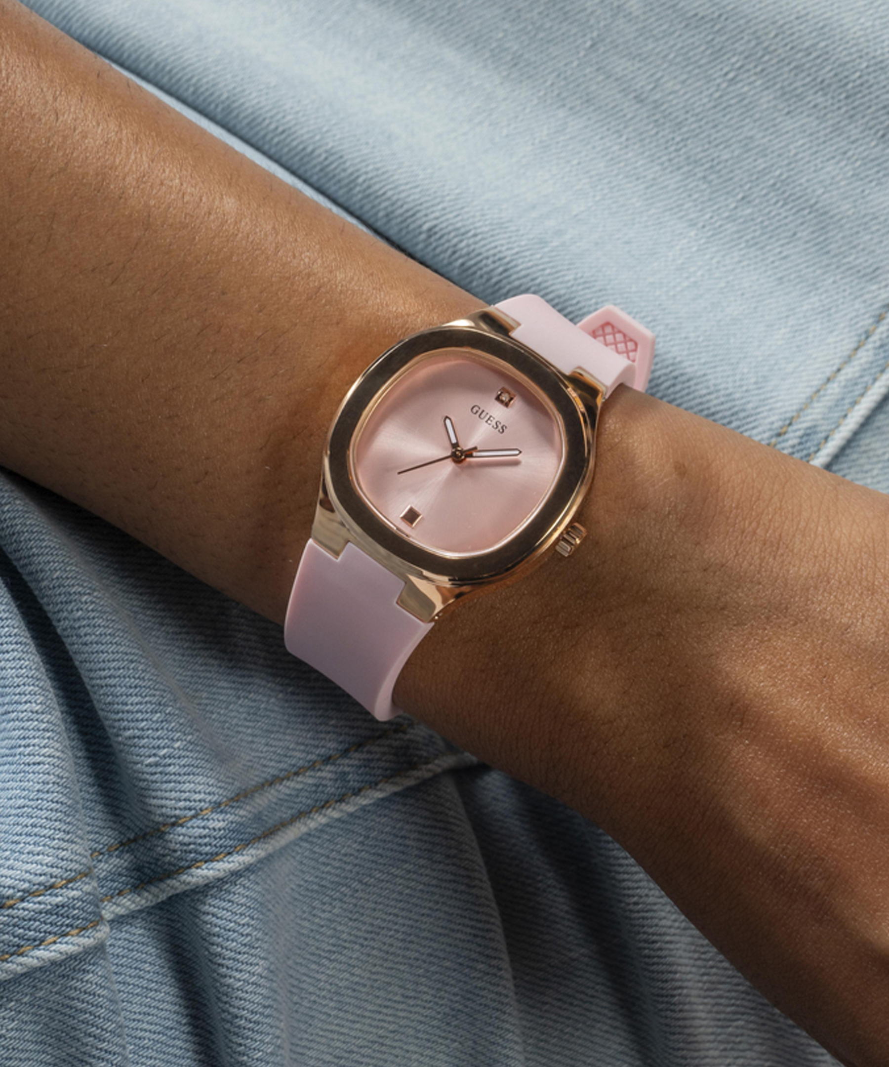 Элегантные женские часы GW0658L2 от американского бренда GUESS. В часах установлен надежный кварцевый механизм Miyota, славящийся своей надежностью и долговечностью. Стальной корпус с золотистым покрытием. Диаметр корпуса – 32 мм. Розовый силиконовый ремешок. Водозащита – 5 АТМ.