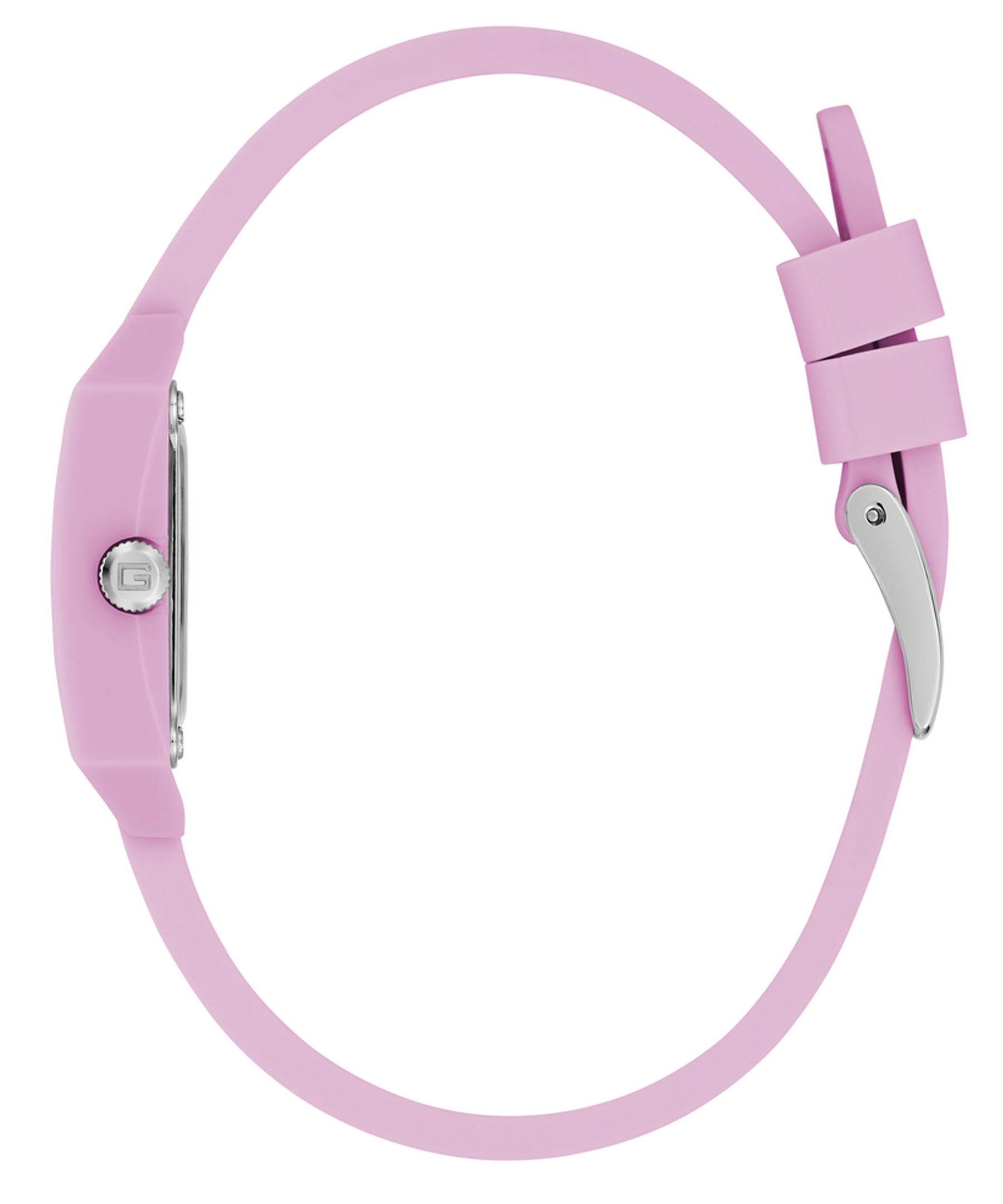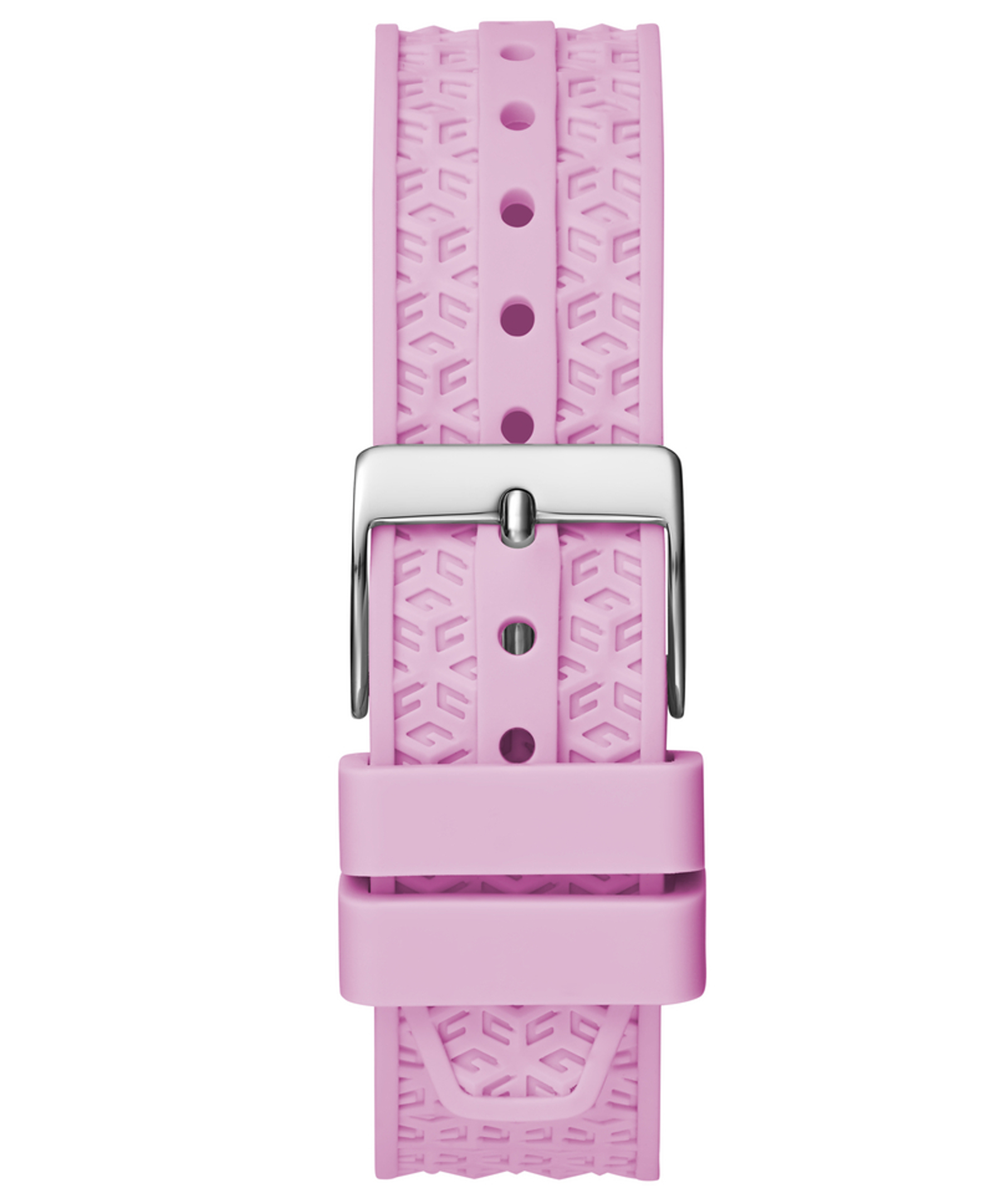 Оригинальные женские наручные часы GW0677L2 американского бренда GUESS. В часах установлен надежный японский механизм Miyota. Часы выполнены в розовом цвете. Прямоугольный корпус плавно переходит в силиконовый ремешок, декорированный текстурным орнаментом. Минеральное стекло. Водозащита 1 АТМ.