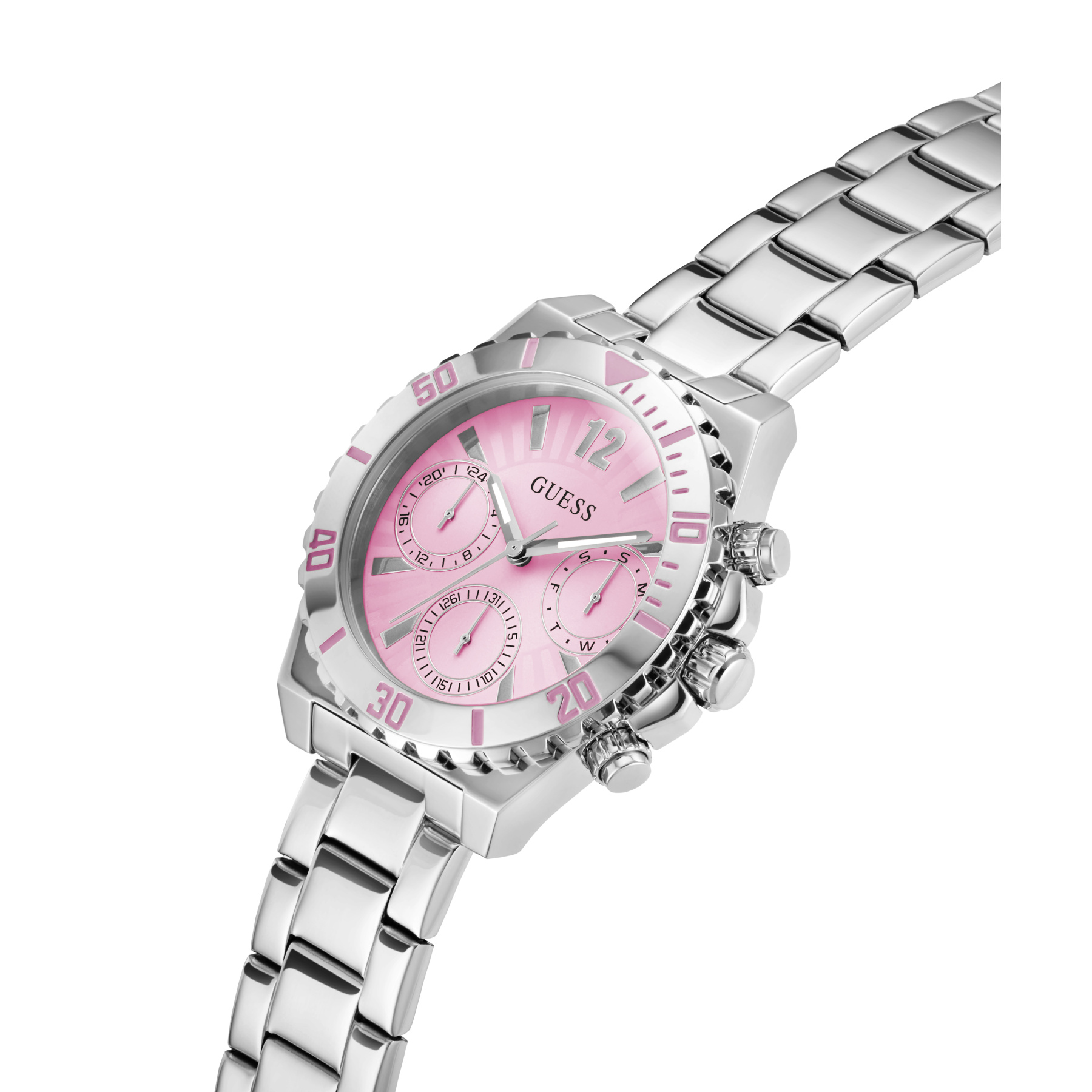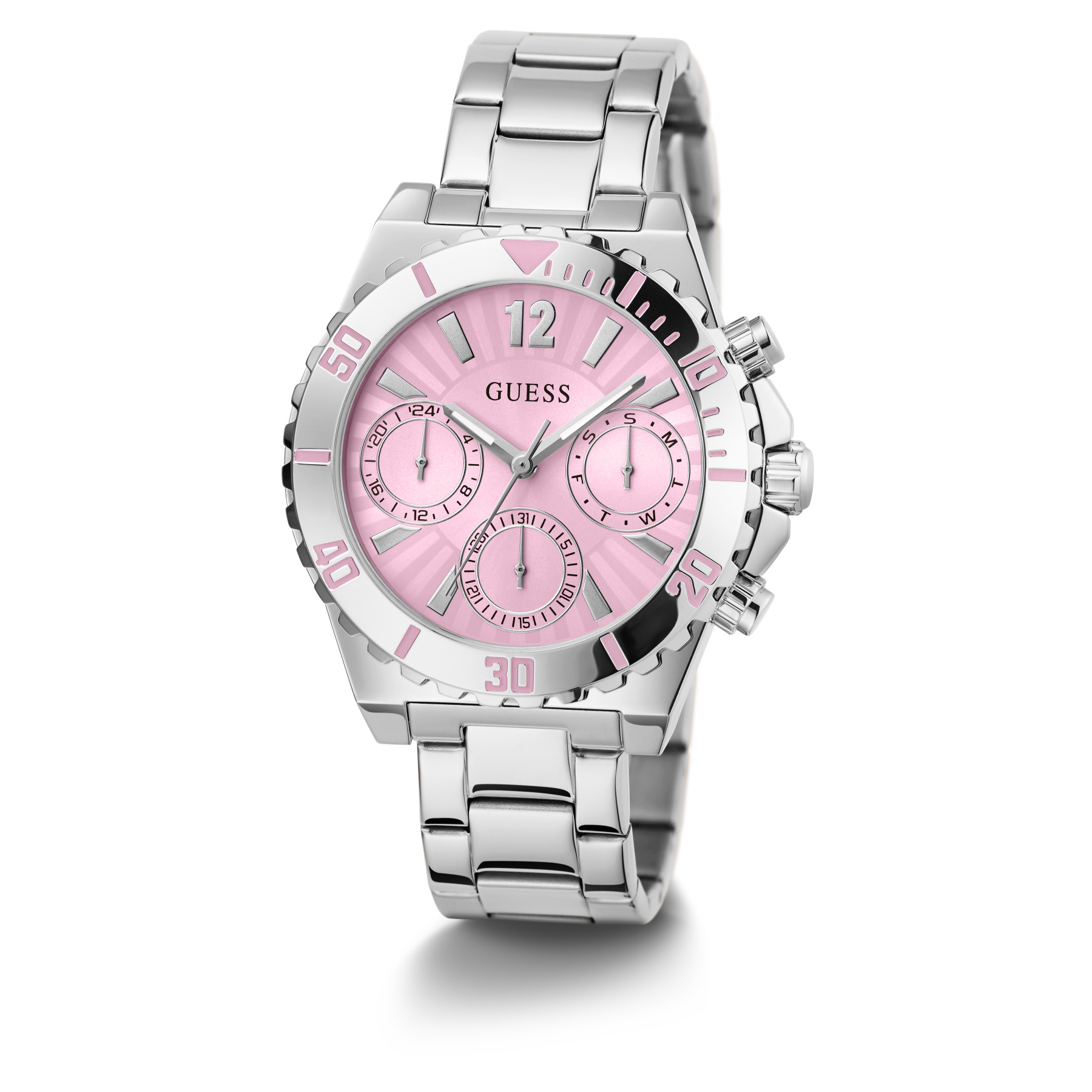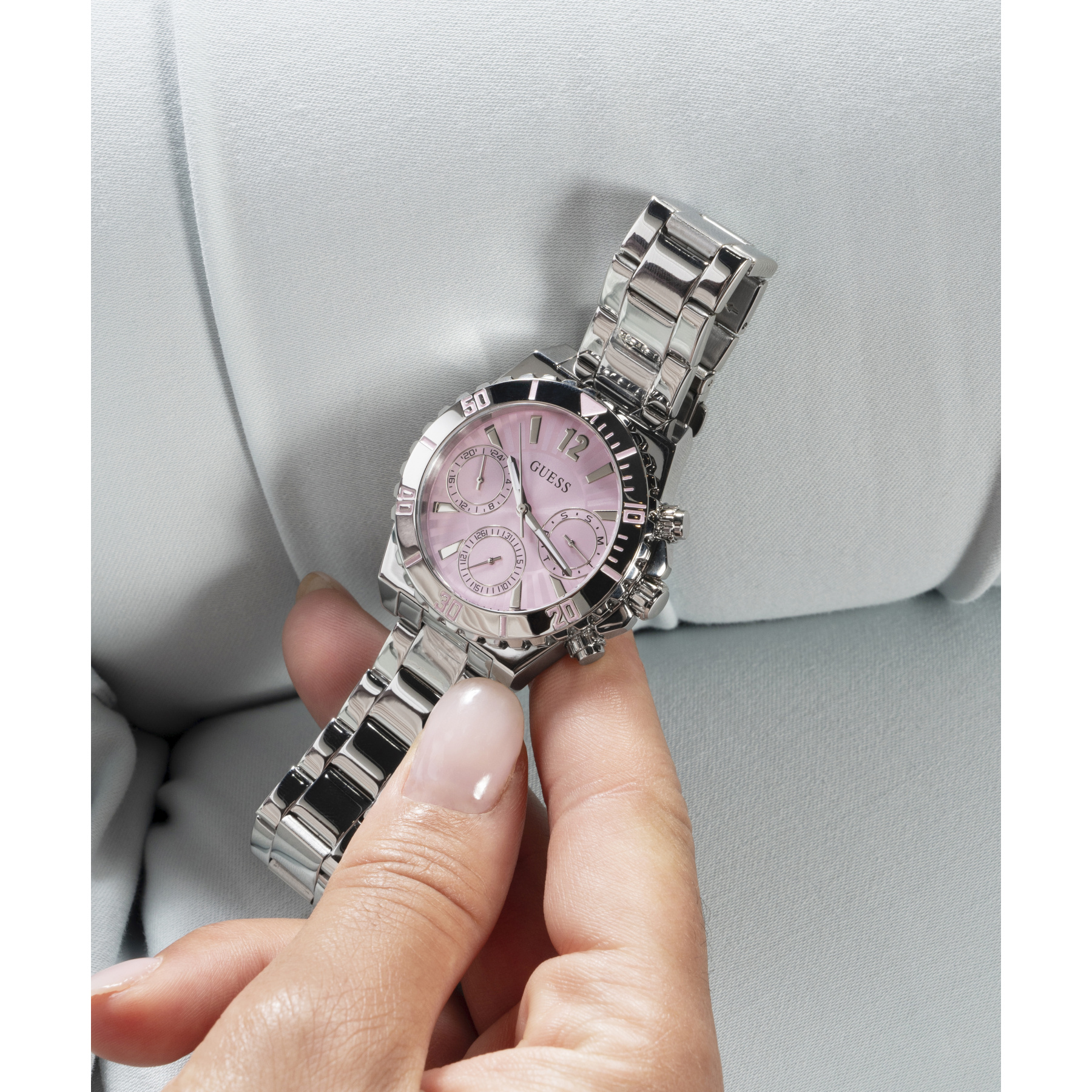 Оригінальний годинник жіночий GW0696L1 з надійним кварцевим механізмом Miyota. Сталеві корпус та браслет. Діаметр корпусу - 38,2 мм. Аналоговий циферблат ніжно рожевого кольору. Мінеральне скло. Водозахист 3 АТМ.-