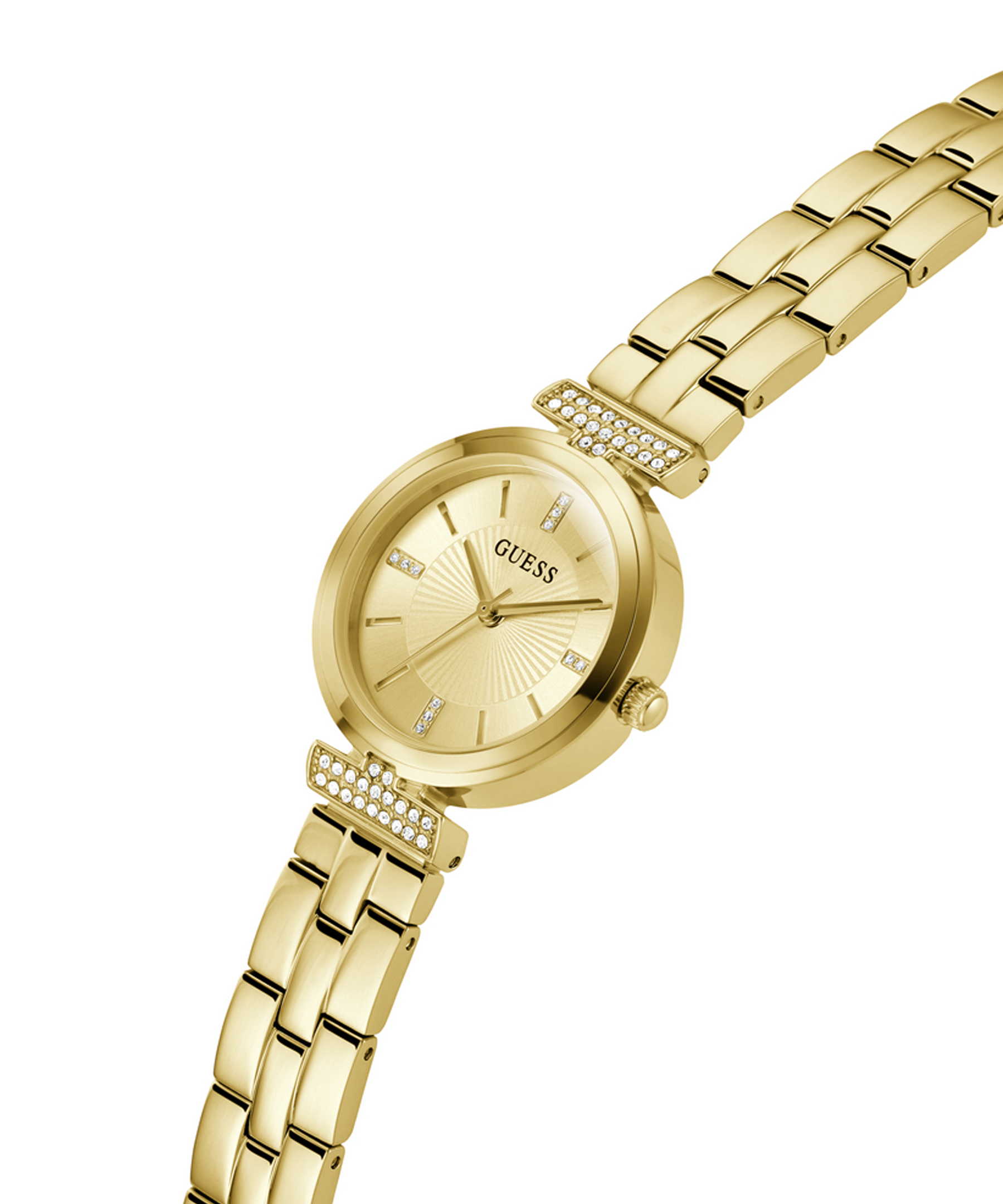 Оригинальные женские часы GESS сочетают в себе нежный изящный дизайн и функциональность и практичность японского кварцевого механизма. Стальной корпус и браслет PVD покрытием Gold. Диаметр корпуса 28мм. Циферблат часов защищен крепким минеральным стеклом. Водозащита 3 АТМ.