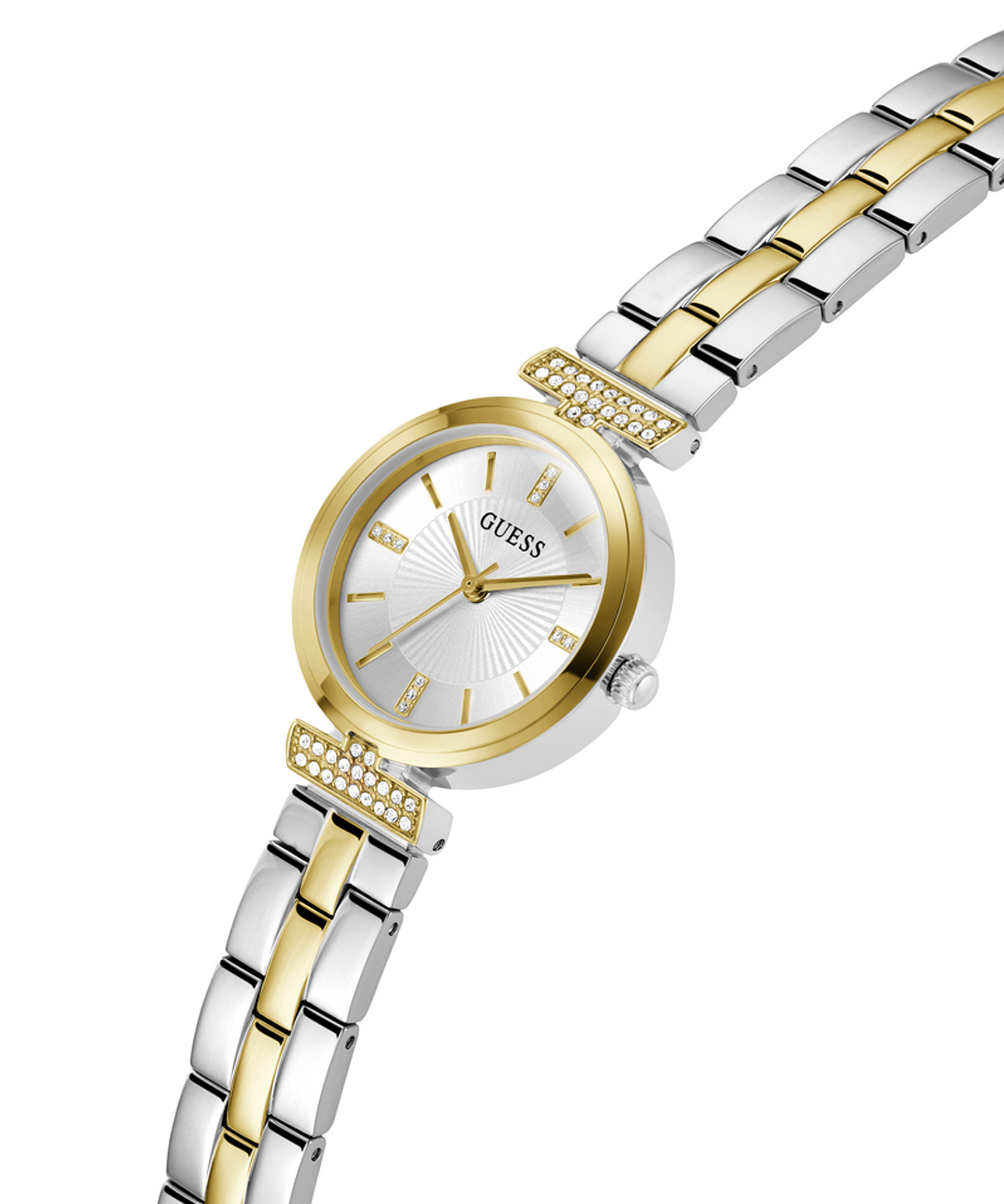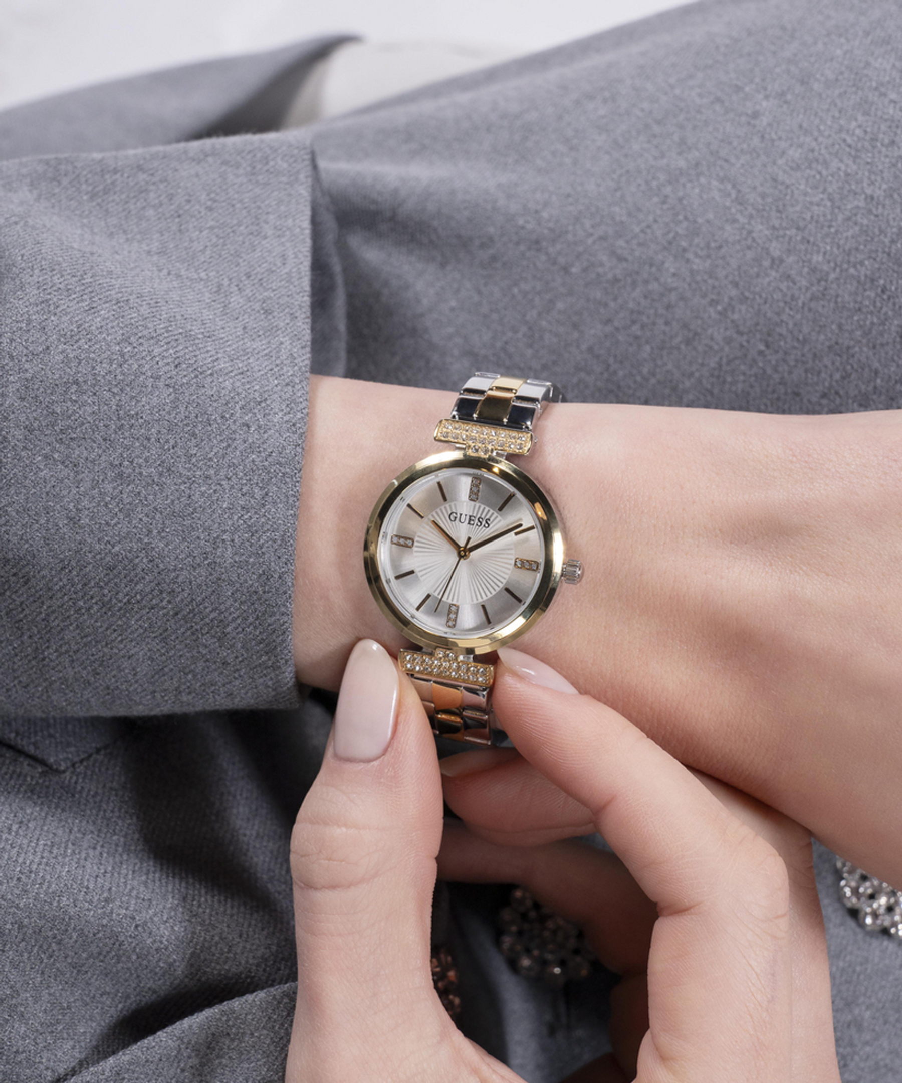 Оригинальные женские часы GUESS – это утонченный аксессуар, сочетающий элегантный дизайн и надежность японского кварцевого механизма. Стальной корпус и браслет с частичным PVD покрытием GOLD создают роскошный вид, подчеркивающий вашу индивидуальность. Компактный диаметр корпуса 28 мм делает часы идеальными для тонкой женской руки, придавая образу изысканности и изящества. Прочное минеральное стекло на циферблате обеспечивает надежную защиту от повреждений, сохраняя при этом чистоту и красоту дизайна. С водозащитой 3 АТМ эти часы идеально подходят для ежедневного ношения, гарантируя вам комфорт и практичность в любой ситуации. GUESS – это часы для женщин, которые ценят стиль, качество и надежность.