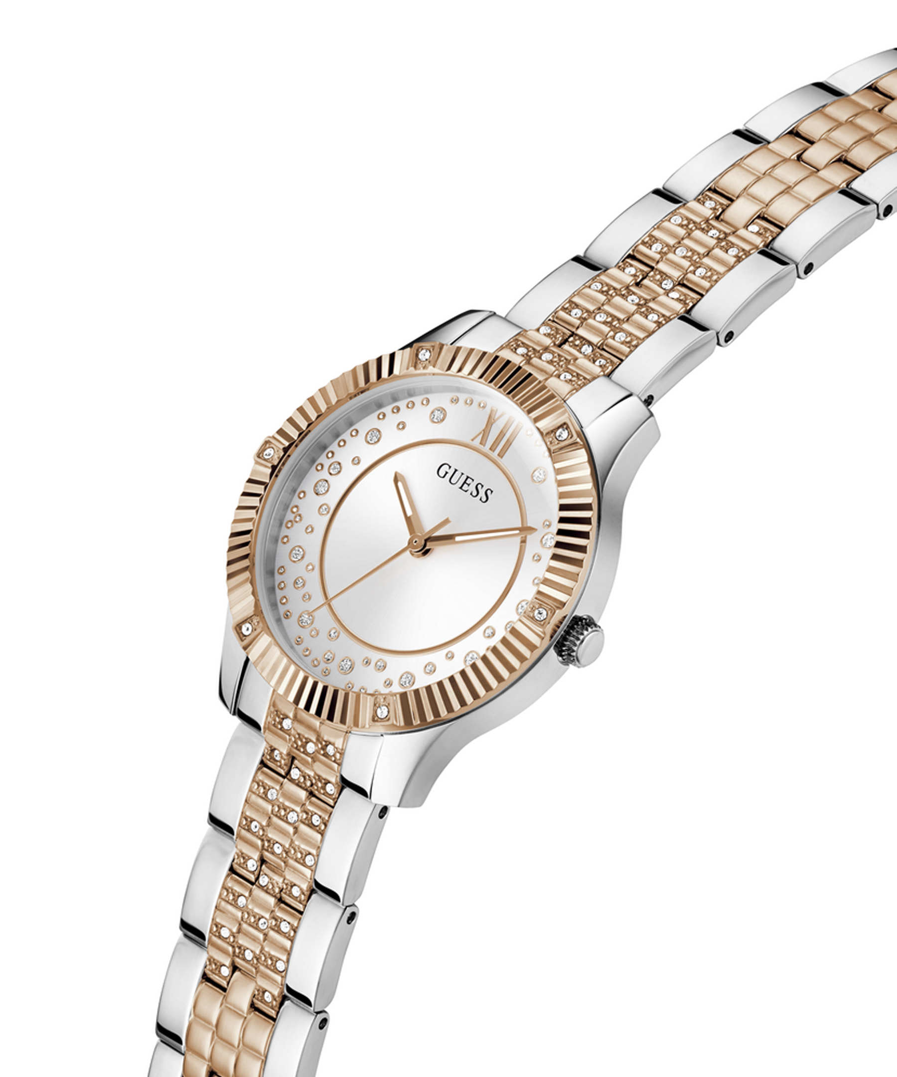 Женские часы GUESS – это идеальное сочетание утонченного дизайна и функциональности. Благодаря надежному японскому кварцевому механизму, эти часы дарят точность и безупречную практичность. Стальной корпус и браслет с частичным PVD покрытием Rose Gold добавляют роскоши, а диаметр корпуса 34 мм создает элегантный силуэт на вашем запястье. Безель, браслет и циферблат украшены мерцающими камнями, которые придают часам особый свет. Прочное минеральное стекло защищает циферблат, а водозащита 3 АТМ придает уверенность в ежедневной носке. Эти часы станут изысканным дополнением к вашему образу, подчеркивая стиль и элегантность каждой детали.