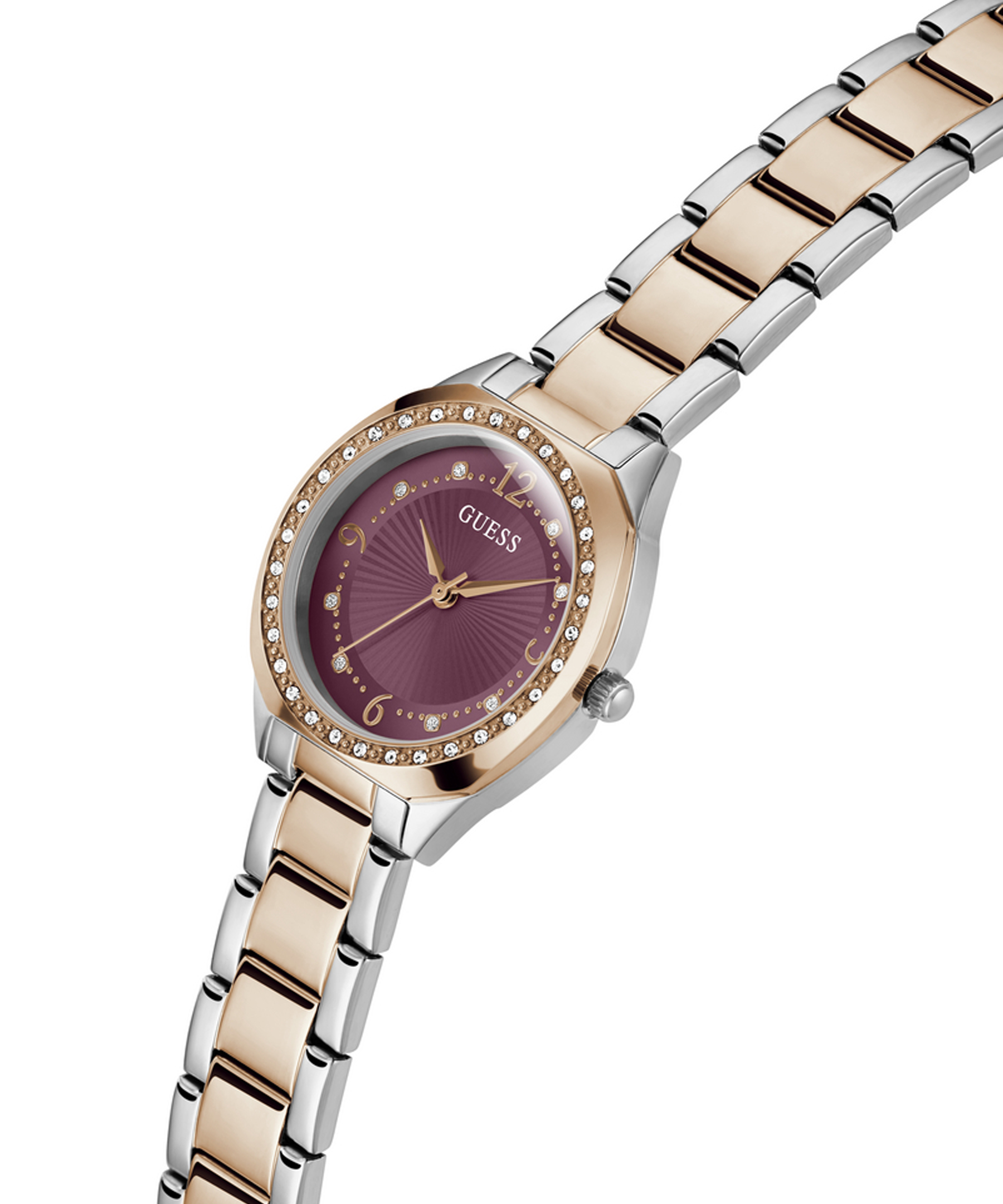 Корпус выполнен из нержавеющей стали с PVD-напылением в нежном оттенке розового золота, что обеспечивает не только стильный вид, но и долговечность. Минеральное стекло надежно защищает циферблат от царапин, а водозащита 3 ATM позволяет не беспокоиться о случайном контакте с водой.