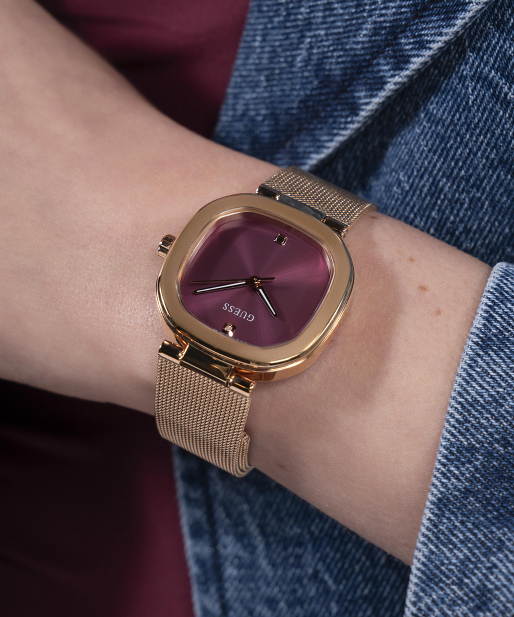 Элегантные женские часы от американского бренда GUESS. В часах установлен надежный кварцевый механизм Miyota, славящийся своей надежностью и долговечностью. Стальной корпус и браслет Диаметр корпуса – 32 мм. Водозащита: 3 АТМ.