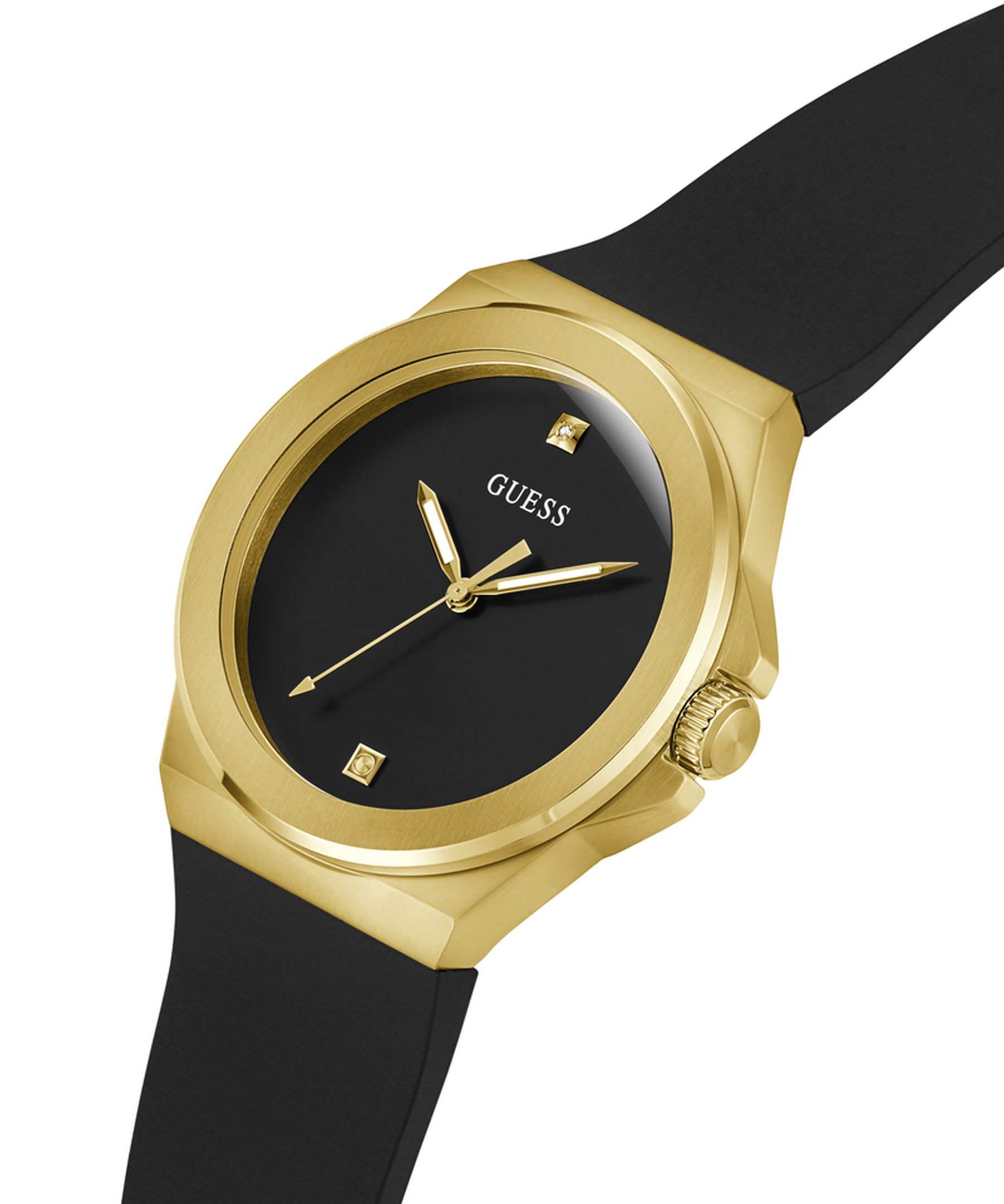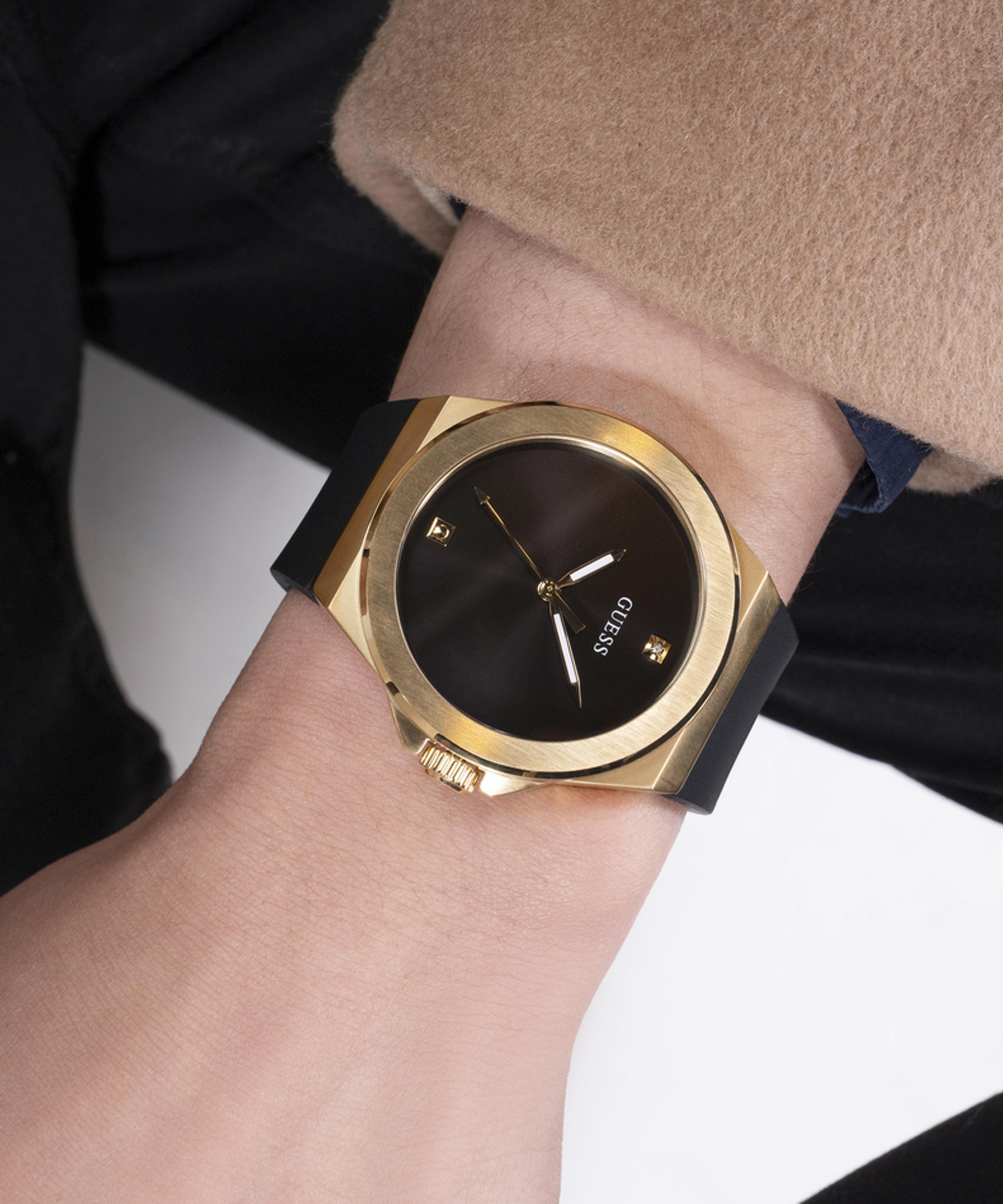 Оригинальные мужские наручные часы GUESS оснащены надежным кварцевым механизмом Miyota, эти часы гарантируют точность и долговечность. Стальной корпус с PVD покрытием GOLD придает изделию роскошный вид, а силиконовый браслет обеспечивает комфорт и удобство в носке. Диаметр корпуса – 44 мм, что подчеркивает его мужество и уверенный стиль. Черный лаконичный циферблат с люминесцентными стрелками и двумя кристаллами создает элегантную контрастность, а водозащита 3 АТМ позволяет не переживать за часы во время повседневных активностей. Застежка-пряжка придает удобство в использовании. Эти часы – для настоящих мужчин, которые ценят стиль, качество и надежность.