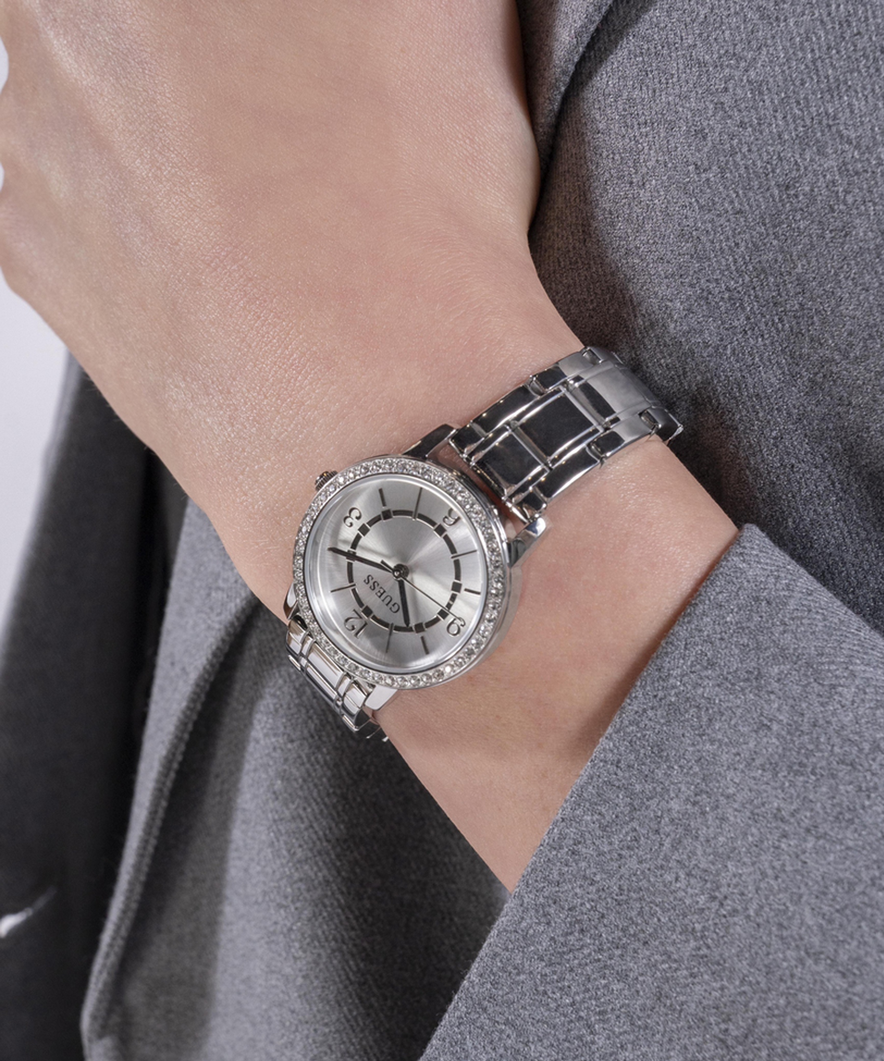 Серебристый циферблат с солнечным узором красиво переливается при свете, а лаконичные стрелки и часовые метки делают считывание времени удобным. Элегантный корпус из нержавеющей стали имеет классический диаметр 28 мм, что подчёркивает изящность модели.