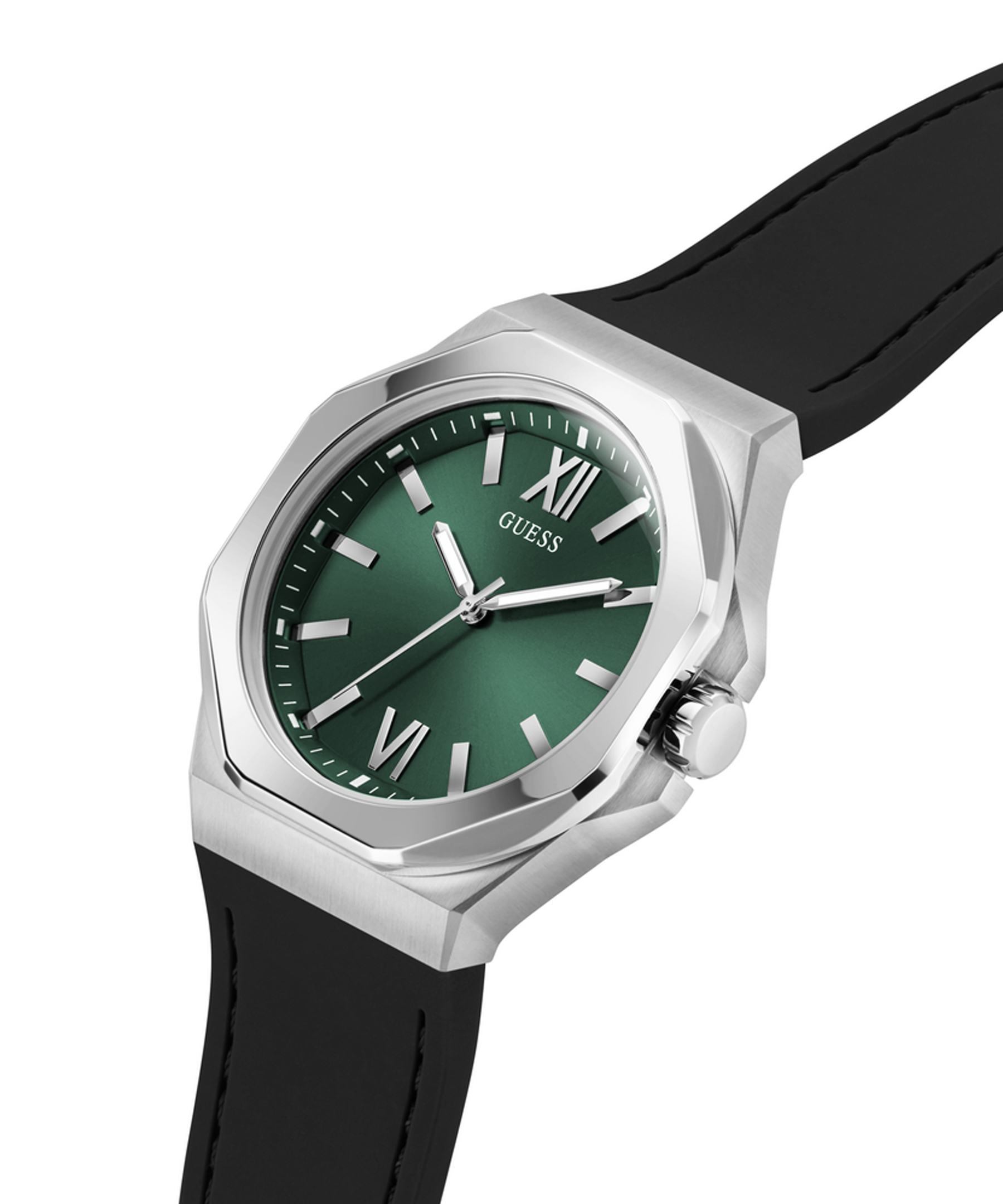 В оснащении часов использован надежный японский механизм Miyota. Часы имеют стальной корпус и черный силиконовый ремешок, что придает им спортивную элегантность и удобство. Диаметр корпуса 41,5 мм, высота 10 мм делает часы идеальными для любой ситуации. Зеленый аналоговый циферблат защищен прочным минеральным стеклом, обеспечивающим надежную защиту от царапин и механических повреждений. Водозащита 5 АТМ.