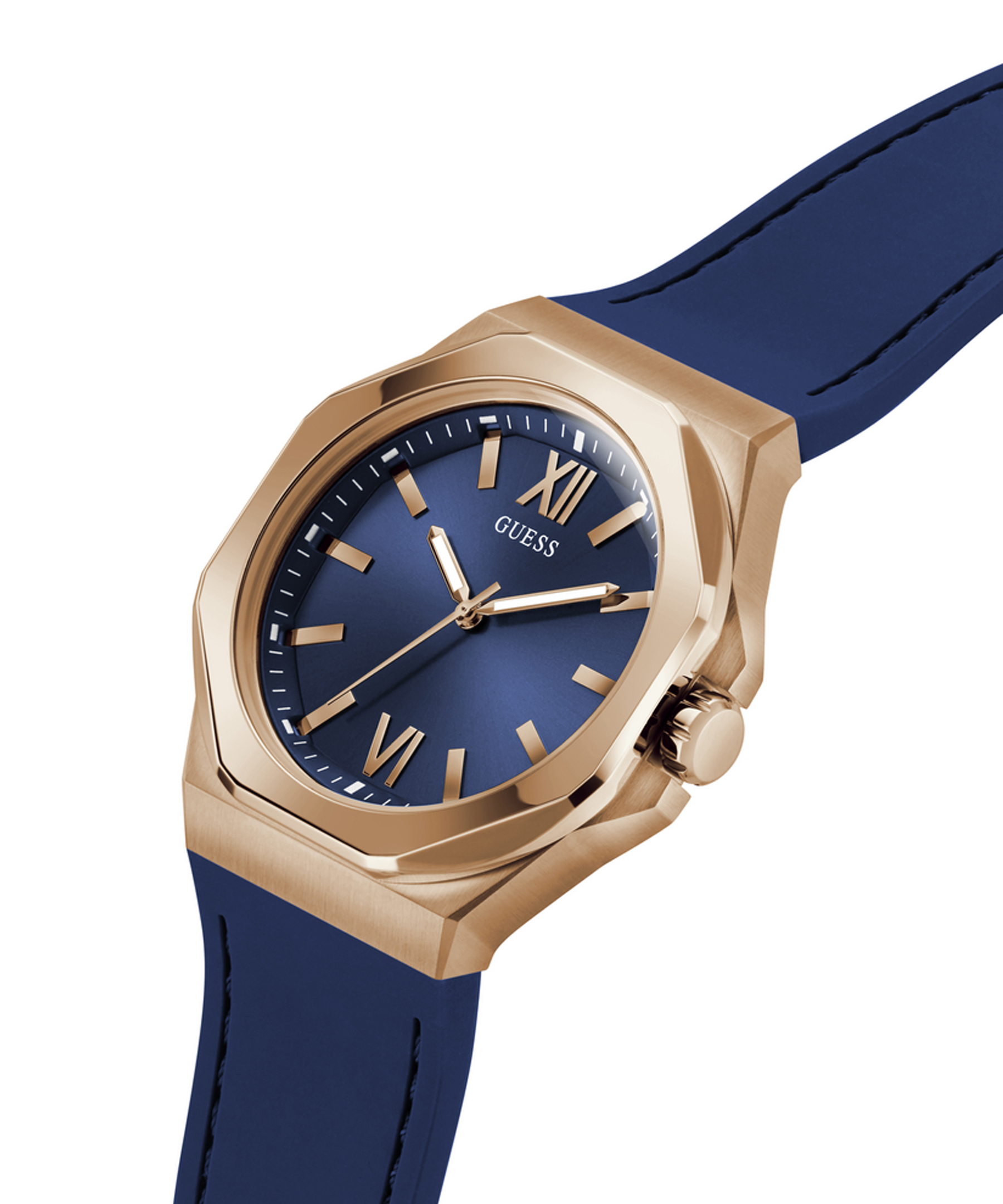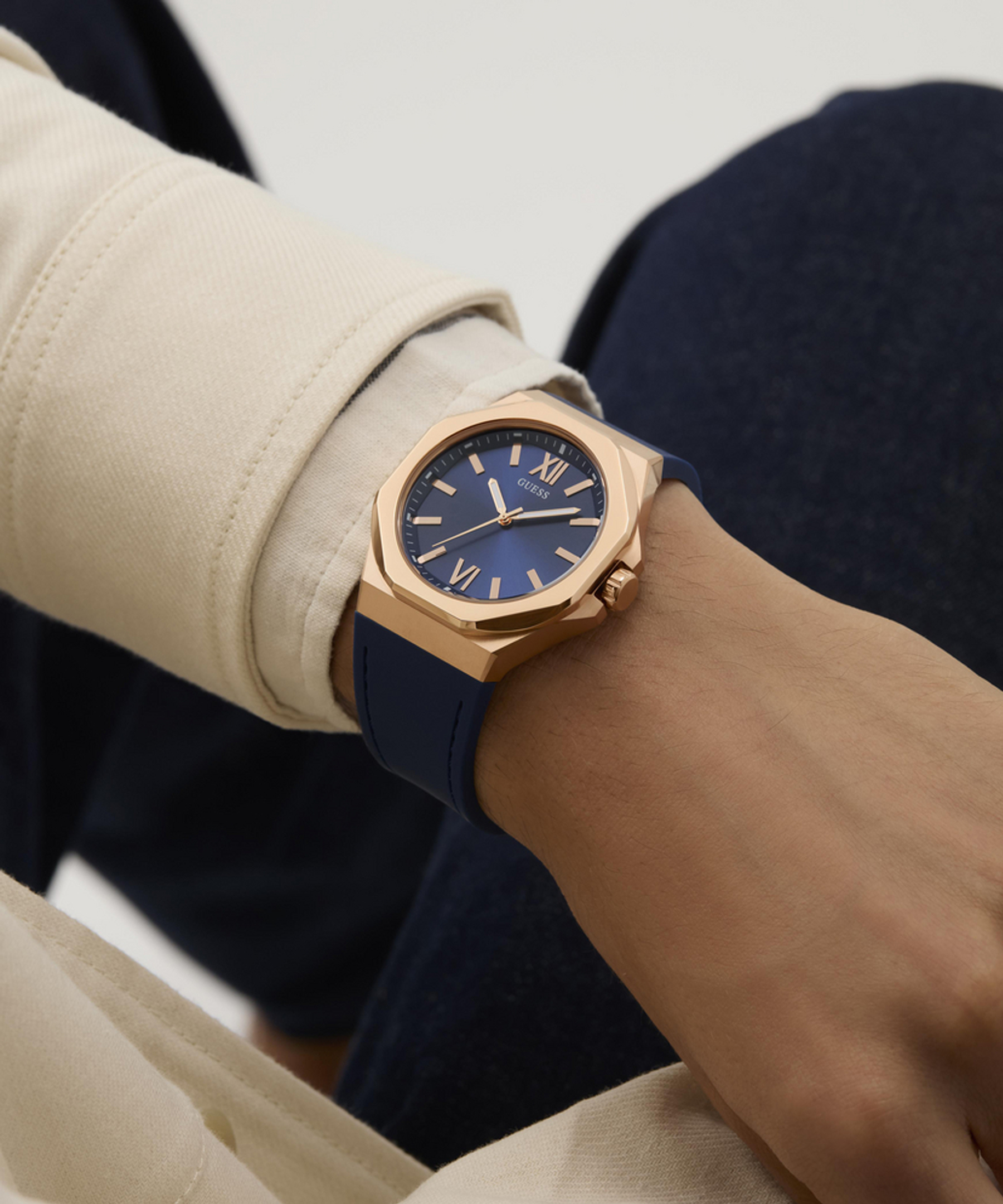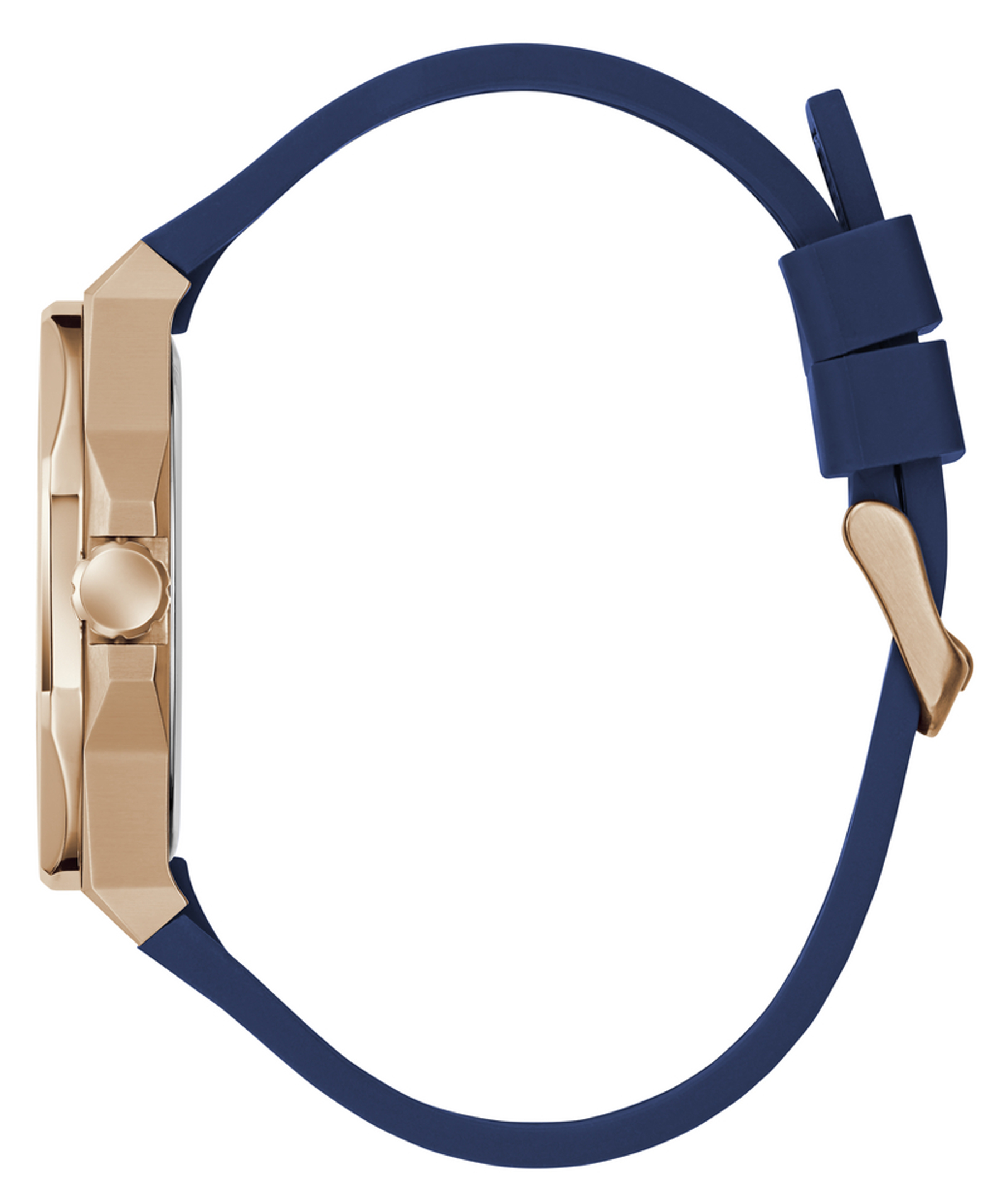 Установленный надежный японский механизм Miyota гарантирует безупречную точность, а стальной корпус с покрытием GOLD TONE придает часам роскошный вид. Силиконовый синий ремешок и синий циферблат создают элегантную цветовую гармонию, подчеркивая стиль и индивидуальность владельца. Стрелки, оснащенные люминесцентным покрытием, позволяют легко читать время в любых условиях освещенности.