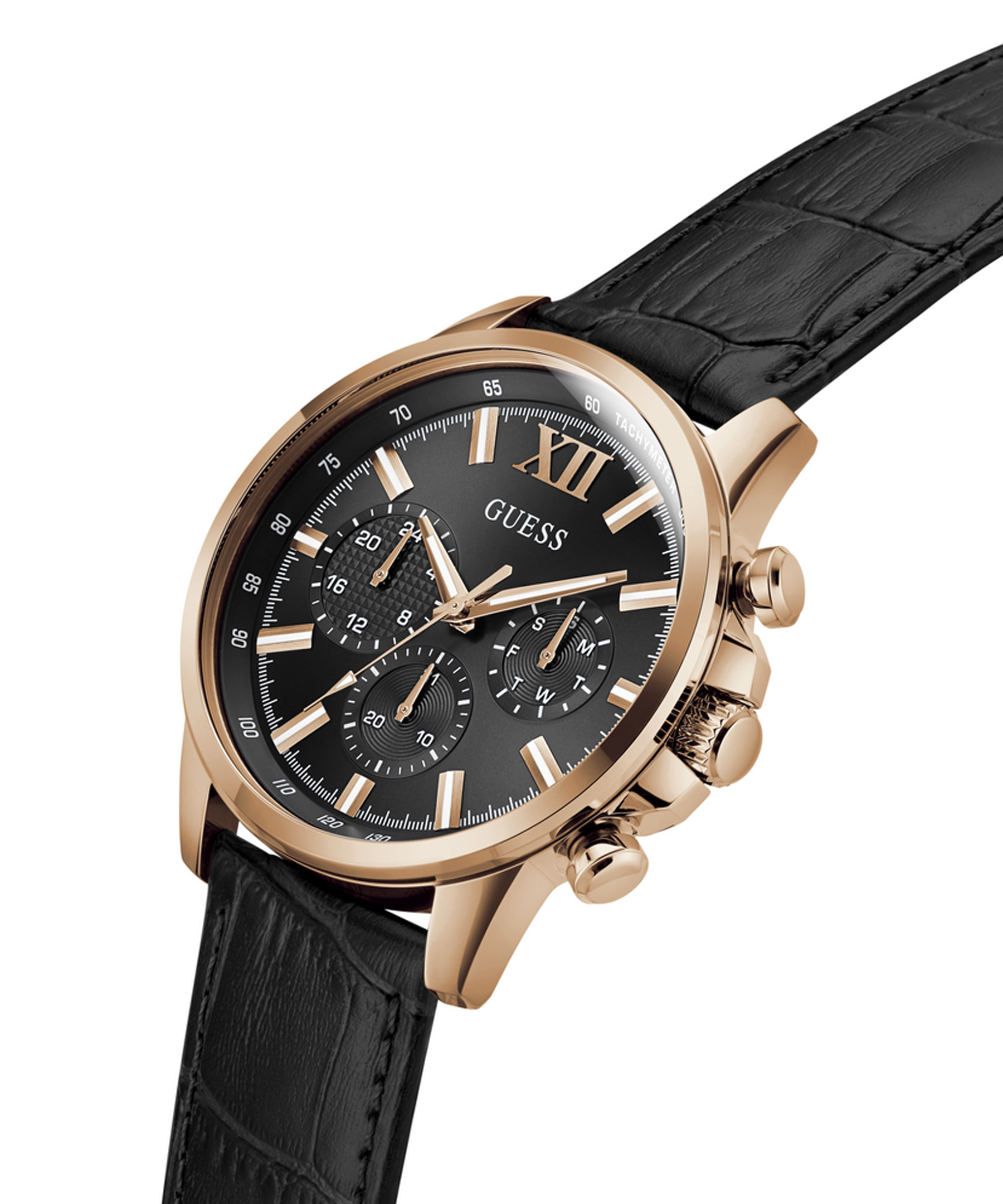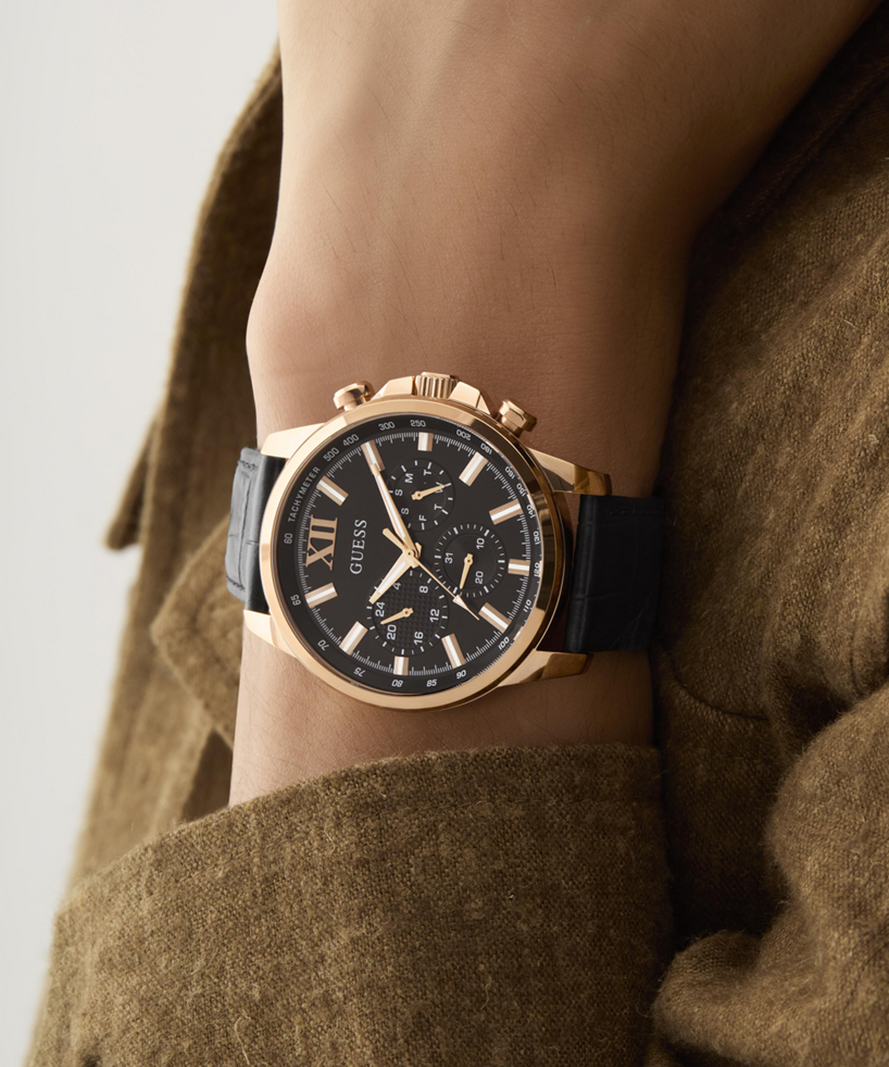 Мужские часы GUESS – сочетание элегантного дизайна и высокой функциональности. Оснащенный японским кварцевым механизмом, они гарантируют точность и надежность в любом моменте. Стальной корпус из высококачественной стали с покрытием Gold и ремешок из натуральной кожи придают часам роскоши и изящества. Диаметр корпуса 44 мм делает часы выразительными и стильными. Циферблат с дополнительными функциями тахиметра, даты, дня недели и 24-часового формата времени обеспечивает удобство и практичность в использовании. Минеральное стекло надежно защищает циферблат от царапин, а водозащита 5 АТМ делает часы идеальными для повседневной носки. Это идеальный выбор для мужчин, ценящих стиль, точность и функциональность.