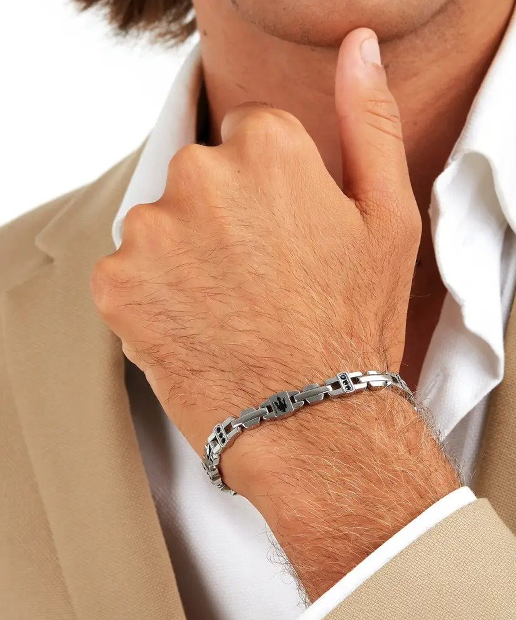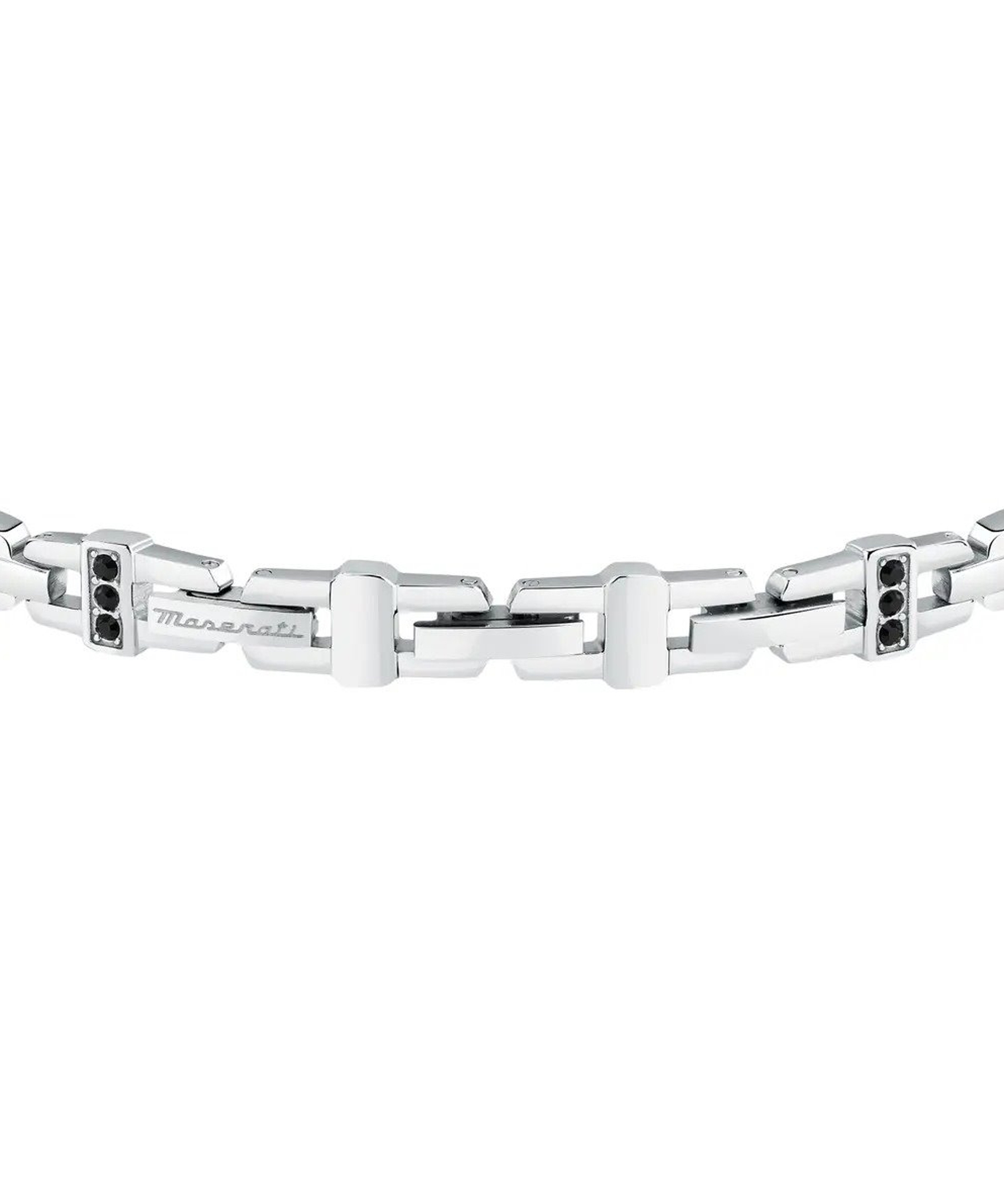 Оригинальный браслет для мужчин – коллекция ICONIC известного итальянского бренда MASERATI. Браслет изготовлен из высококачественной нержавеющей стали и украшен кристаллами.  Размер: 18,5+3 см. Вес: 23г.