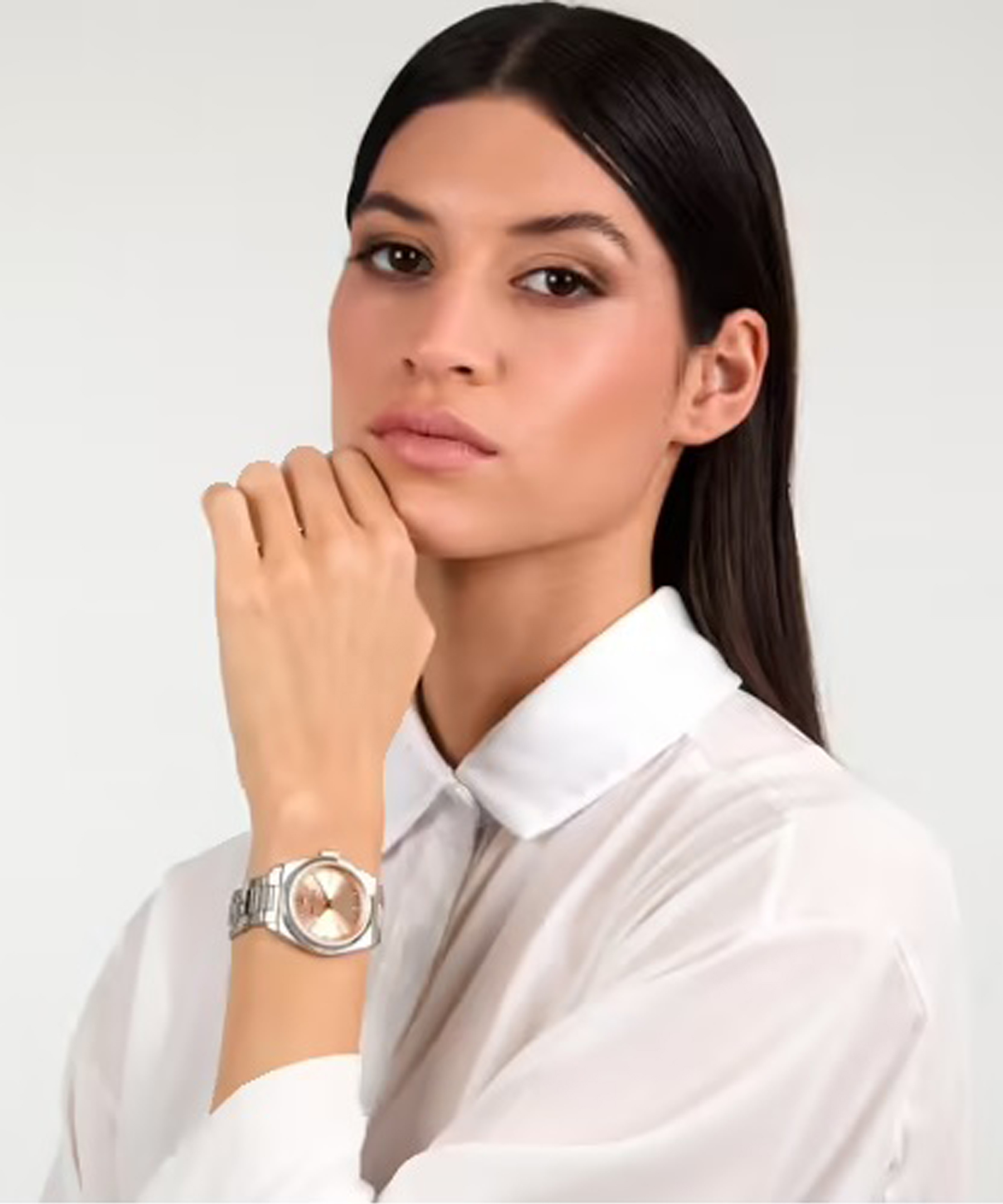 Оснащенные надежным кварцевым механизмом, эти часы дарят безупречную точность в каждом моменте. Стальной браслет со складной застежкой клипсой надежно фиксирует часы на запястье, обеспечивая комфорт и удобство при ношении. Диаметр корпуса 35 мм придает часам изящный вид, подчеркивая женственность и стиль.