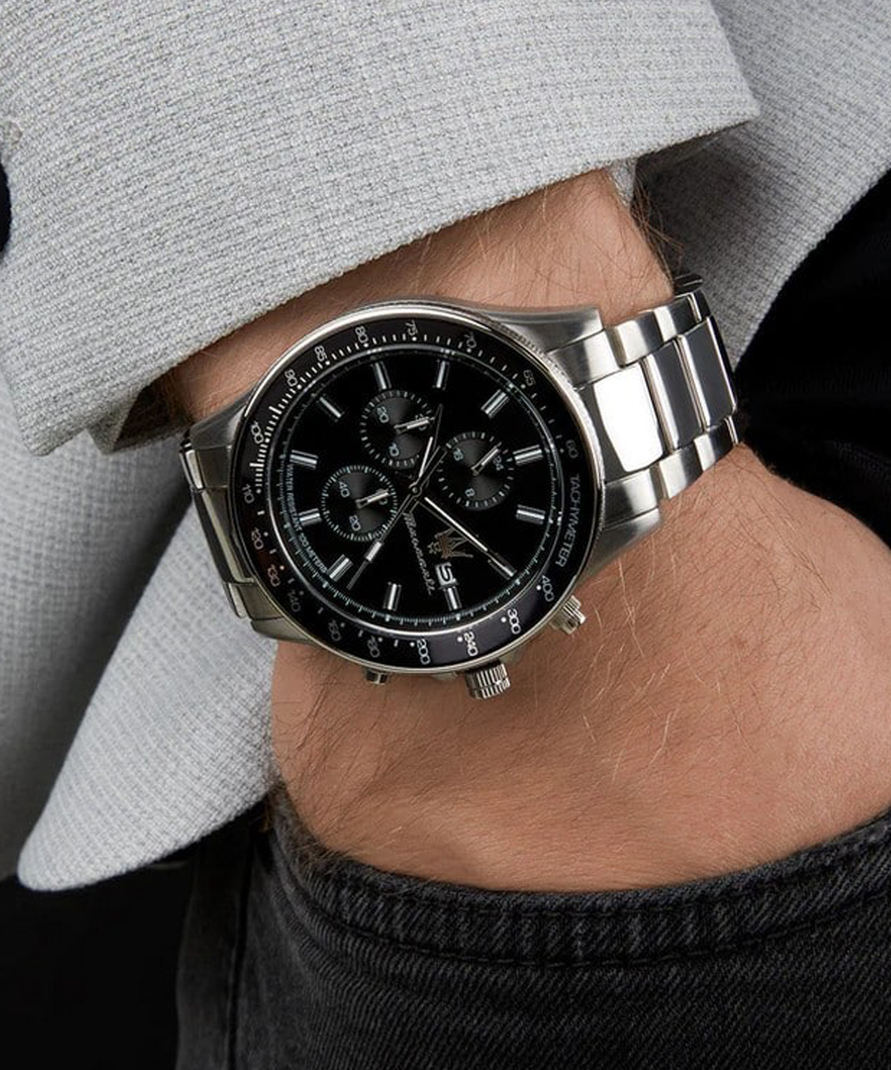 Стильные часы-хронограф Maserati из коллекции Sfida – это воплощение спортивной динамики и изысканной инженерии. Его дизайн вдохновлен миром автоспорта, ощущаемым в каждой детали: от мощного стального корпуса до браслета из высококачественной нержавеющей стали.