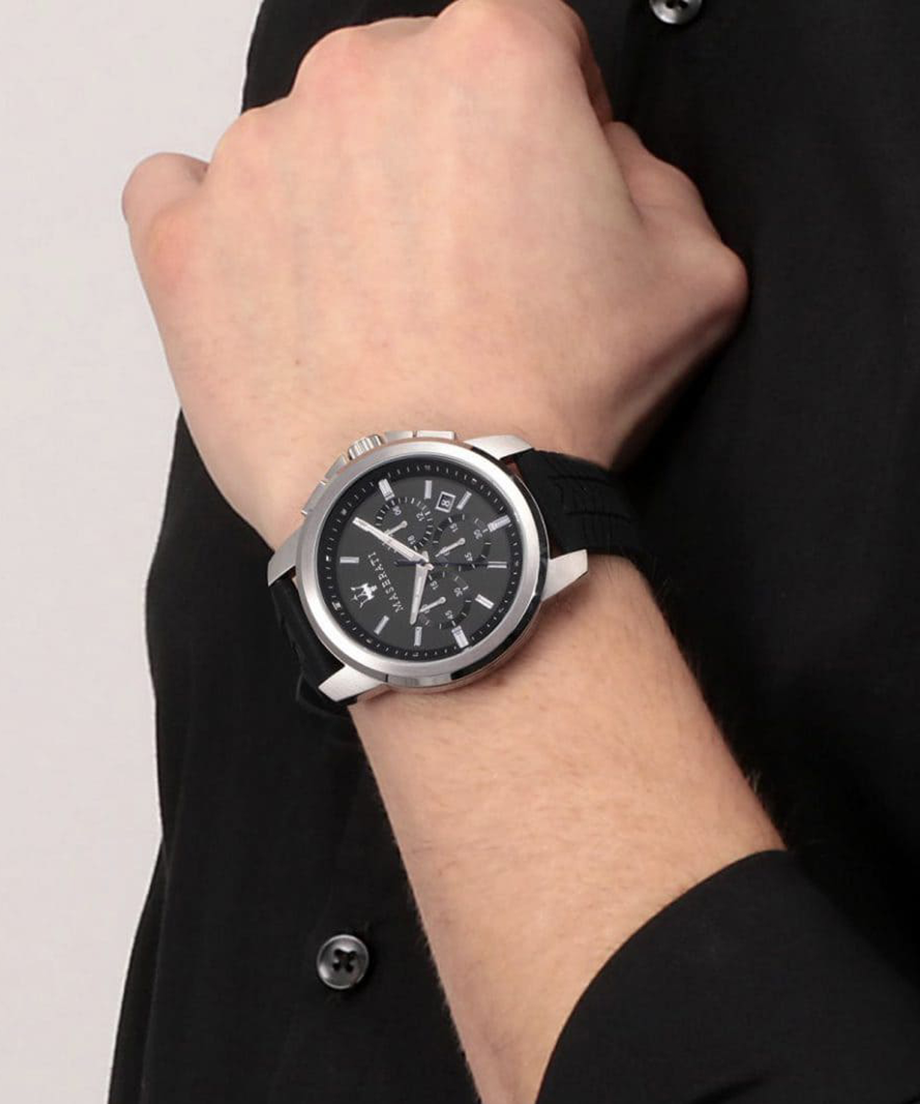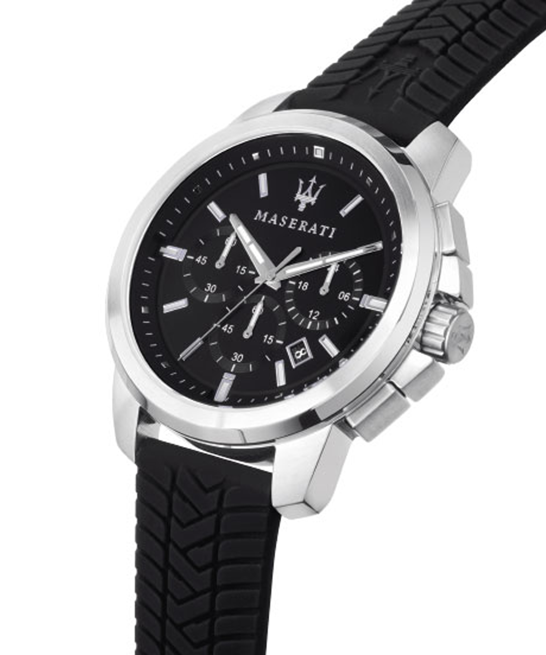 Черный ремешок, напоминающий протектор шины, массивный циферблат в стиле спидометра и фирменный трезубец Maserati – все это говорит о силе, решительности и бескомпромиссном стиле владельца. Эти часы – выбор настоящих мужчин, которые ценят качество, престиж и характер.