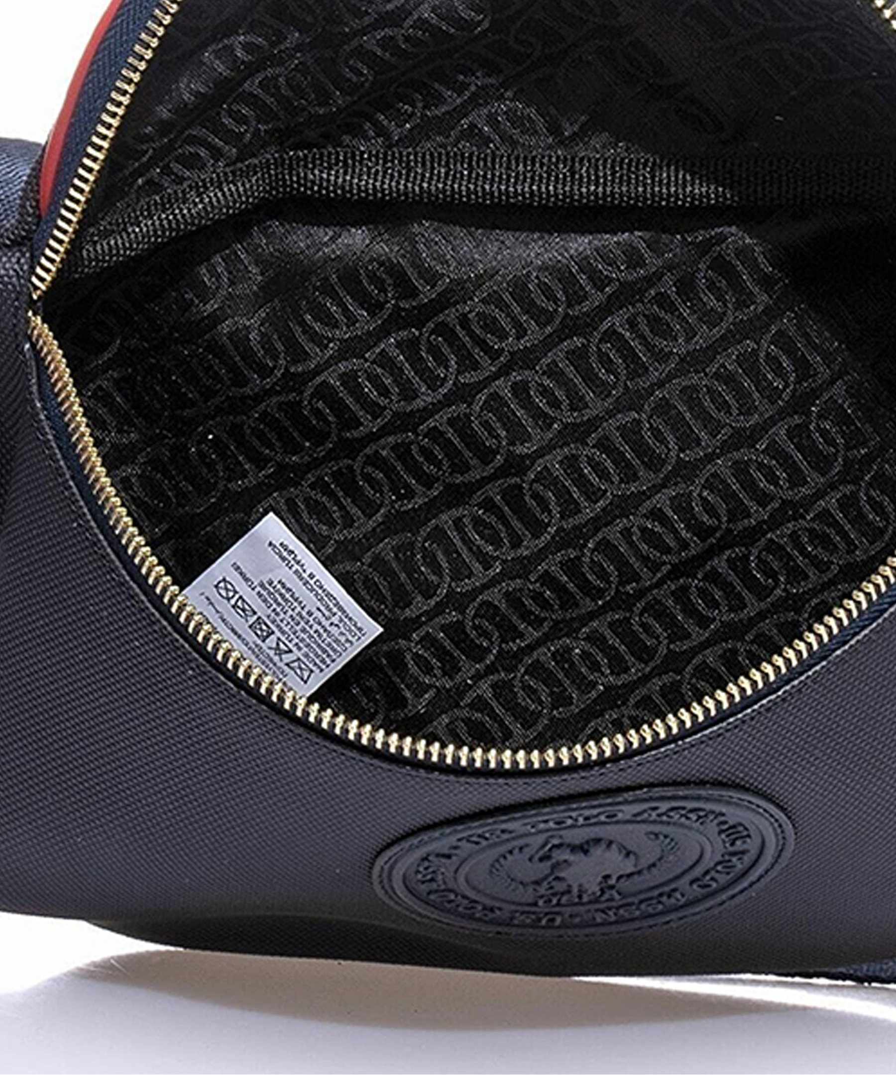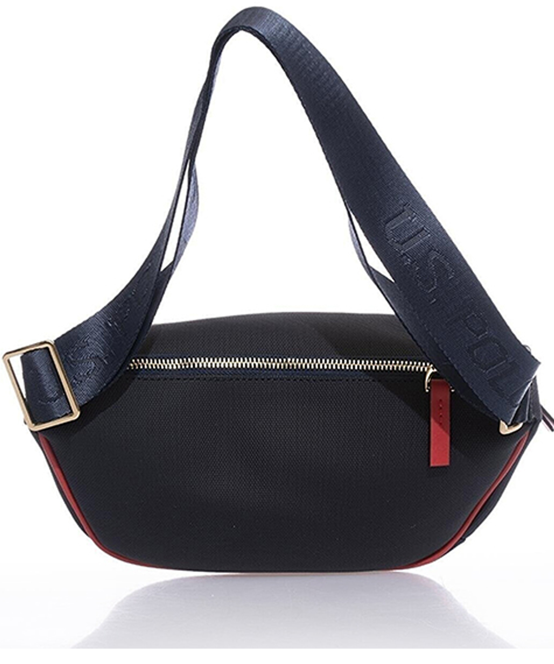 Женская поясная сумка US22609 NAVY американского бренда U.S. Polo Assn. Черный цвет аксессуара дополняют красная оконтовка, золотистая фурнитура и логотип. Застегивается на молнию. Регулируемая ручка. Размер: 28 х 16 х 6 см.