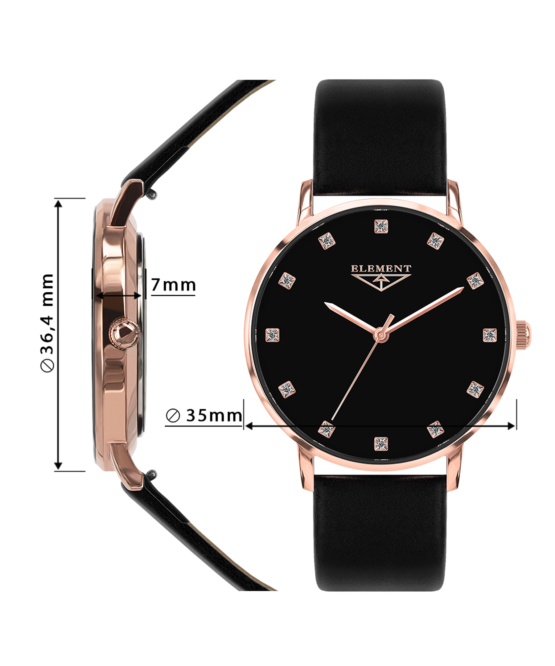 Ця стильна модель від 33 Element вирізняється елегантним дизайном і високою якістю виконання. Кварцовий механізм гарантує точність ходу, а корпус діаметром 36 мм, виготовлений із високоякісної сталі з покриттям Rose Gold, додає образу розкоші та сучасності.