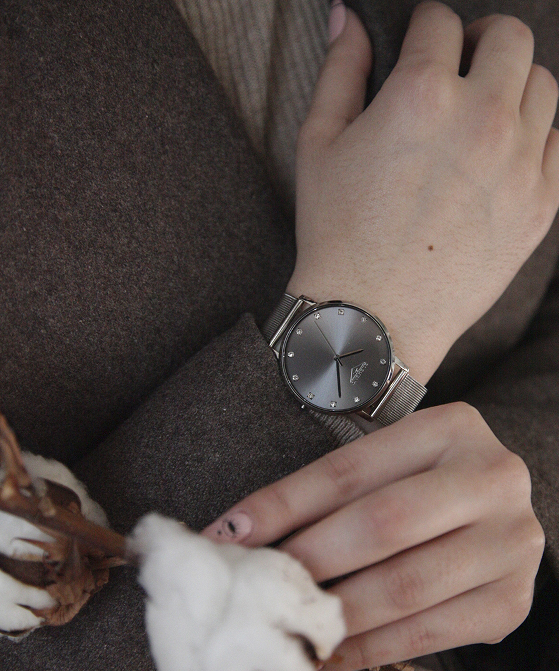 Оригінальний жіночий годинник 33 Element зі швейцарським кварцовим механізмом. Аналоговий сірий циферблат вишукано інкрустований кристалами, що виконують функцію міток часу. Сапфірове скло, стійке до механічних пошкоджень, має антивідблиск і особливу прозорість. Металевий браслет у техніці міланського плетіння елегантно виглядає на руці, надаючи аксесуару вишуканість та зовнішню привабливість. Класична модель, виконана в сучасних модних тенденціях, чудово поєднується з будь-яким стилем одягу і стане для Вас незамінним аксесуаром.