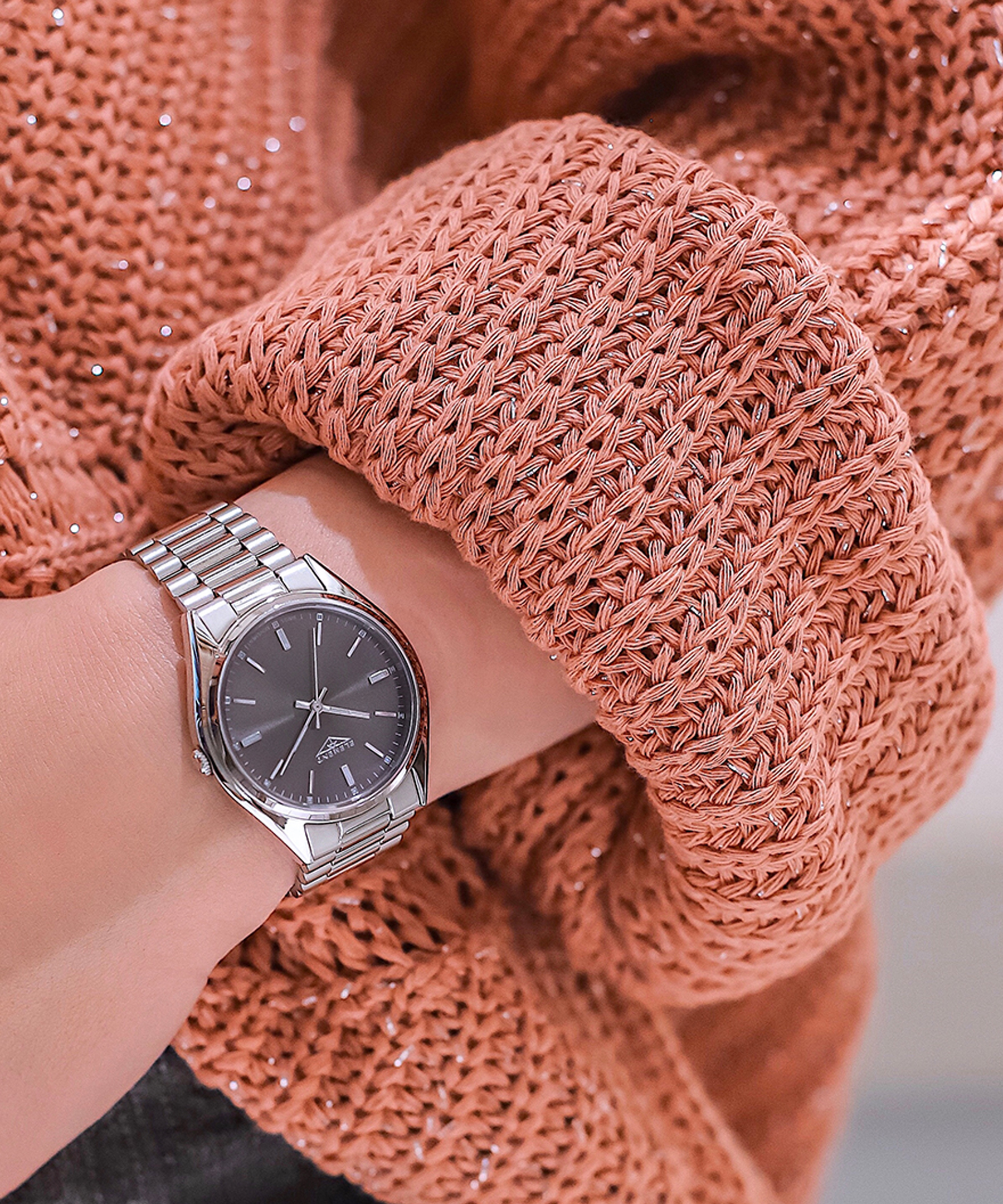 Класичний жіночий годинник 33 Element з точним швейцарським механізмом Ronda виготовленіий з високоякісної нержавіючої сталі. На циферблаті сірого кольору - сріблясті мітки часу і стрілки з люмінесцентним покриттям. Стійке до подряпин і потертостей сапфірове скло. Металевий браслет комфортно лягає на руку і виглядає як елегантна прикраса. Запропонована модель - це чудовий жіночий аксесуар як до ділового образу, так і до джинсів.