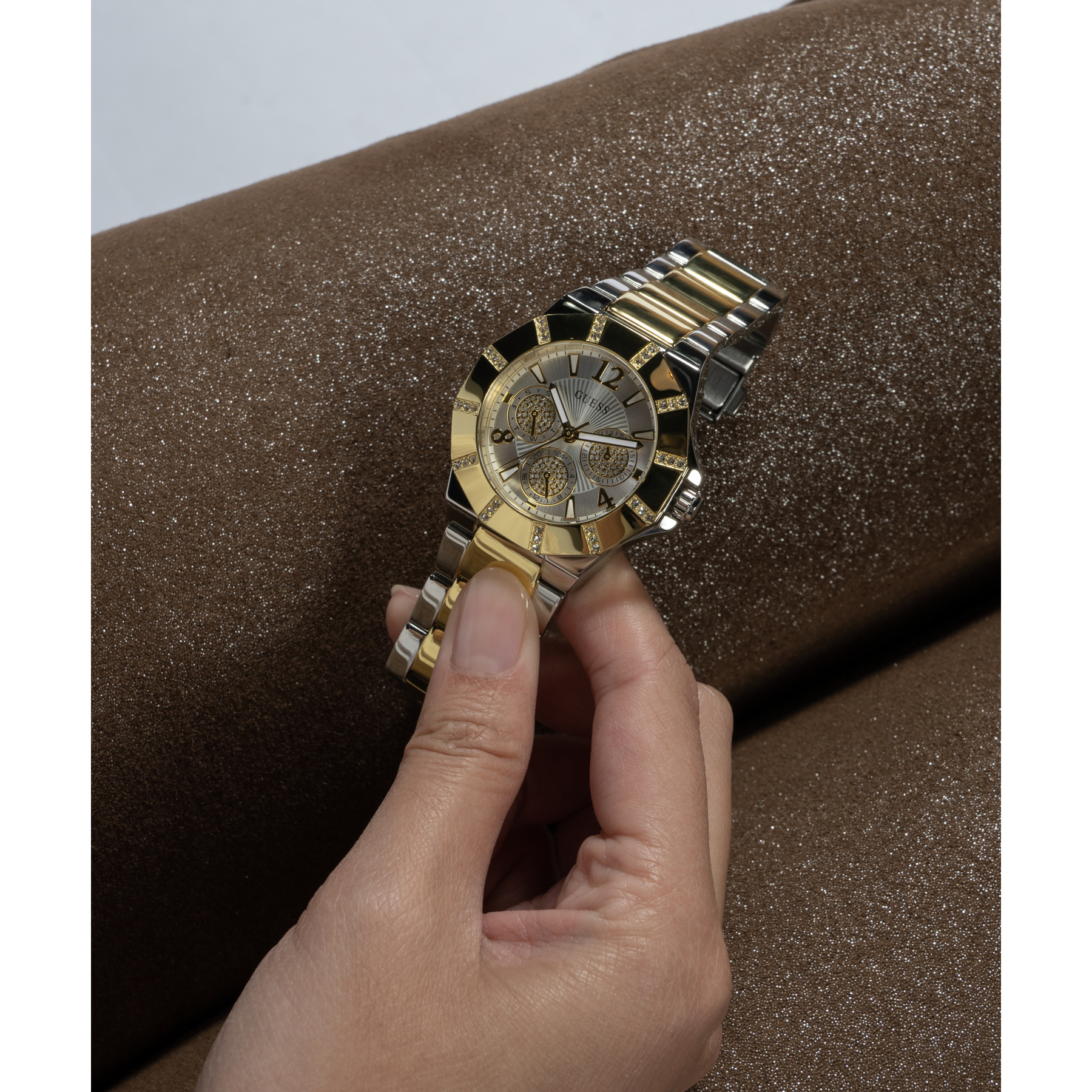 Жіночий наручний годинник GW0616L2 легендарного американського бренду Guess гідний уваги шанувальниць класичного, консервативного стилю. В годиннику встановлений надійний кварцевий механізм Miyota. Сталеві з комбінованим покриттям корпус та браслет. Діаметр корпусу - 36 мм. Аналоговий циферблат захищений мінеральним склом. Водозахист 3 АТМ.-