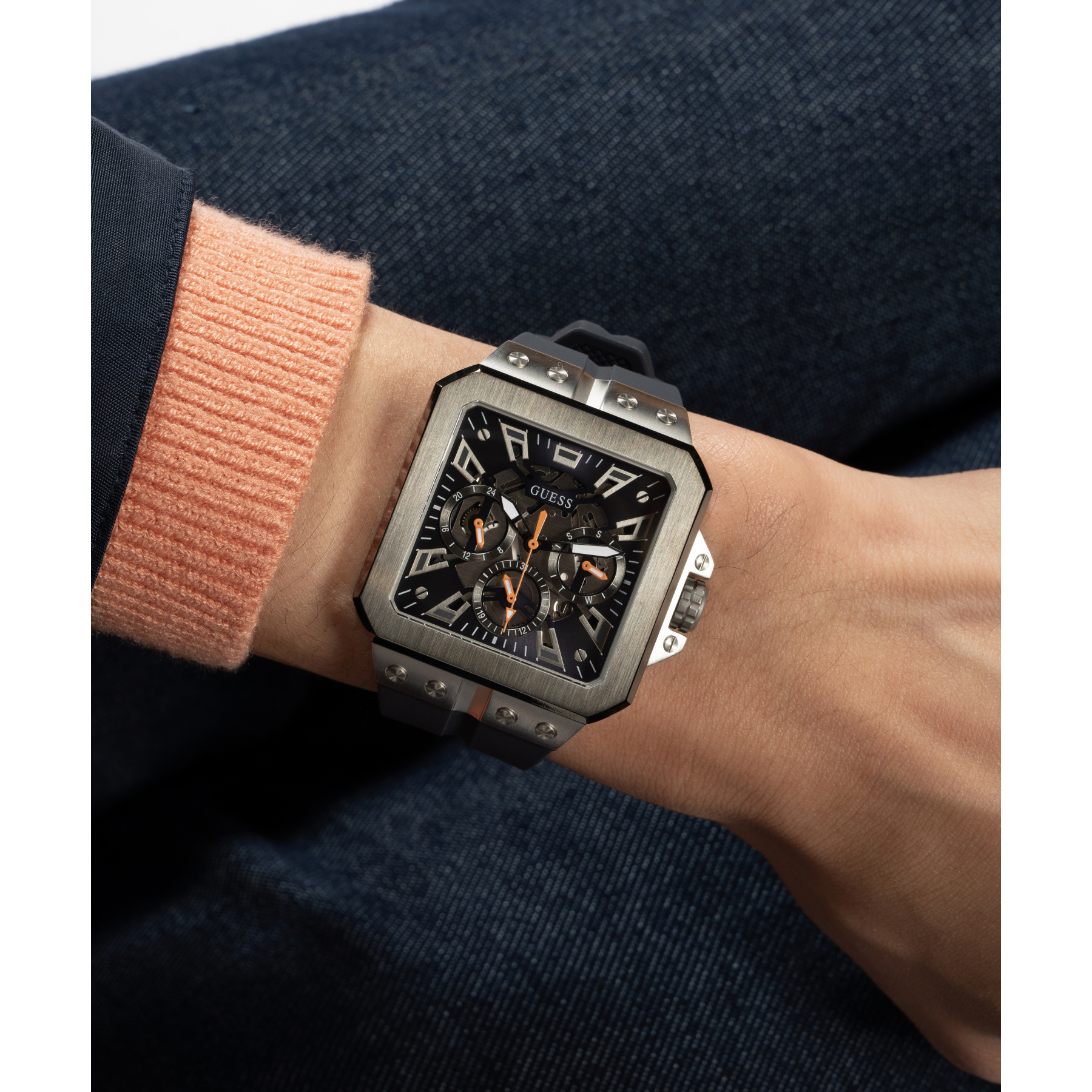 Чоловічий багатофункціональний годинник GUESS GW0637G1 з колекції MENS SPORT. Сталевий Silver Tone квадратной форми корпус. Розмір корпуса - 42 х 42 мм, товщина - 10,1 мм. Синій силіконовий ремінець с класичною застібкою пряжкой. Стрілки с люмінесцентним покриттям. Водозахист - 3 АТМ.