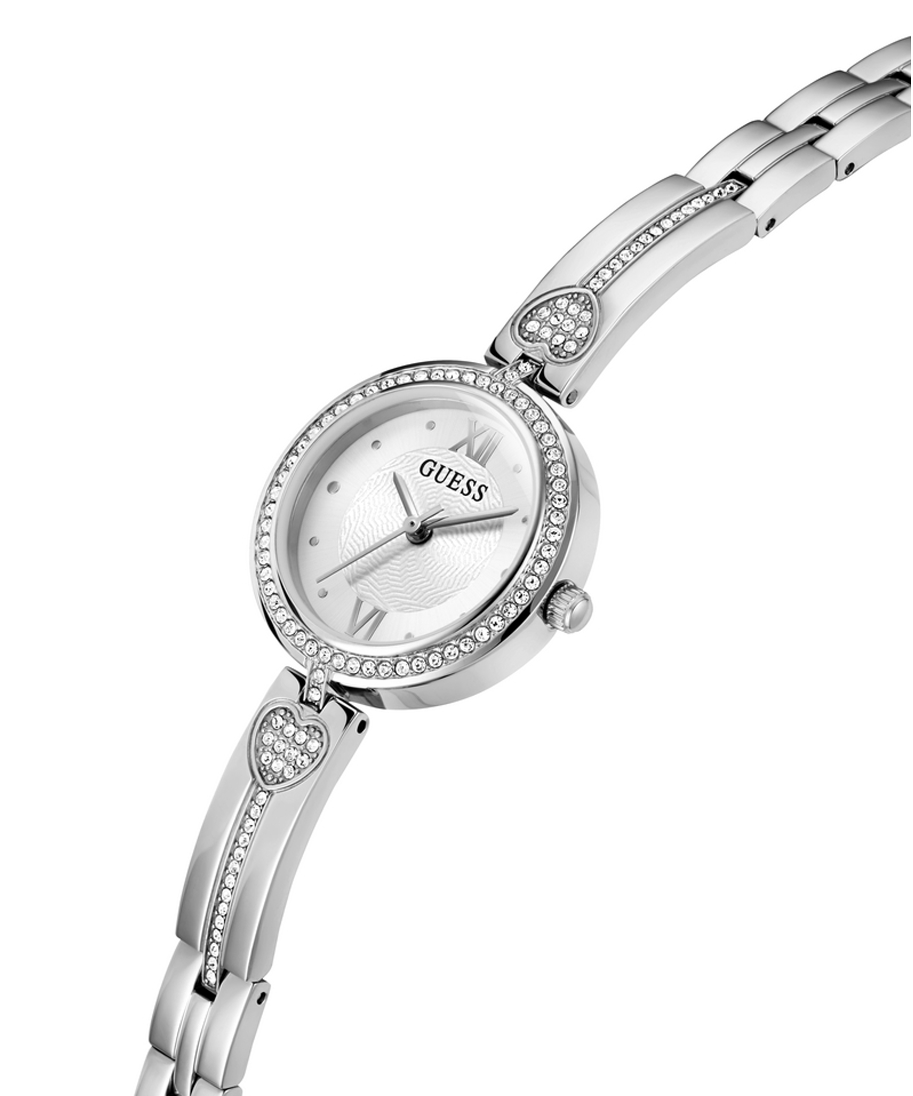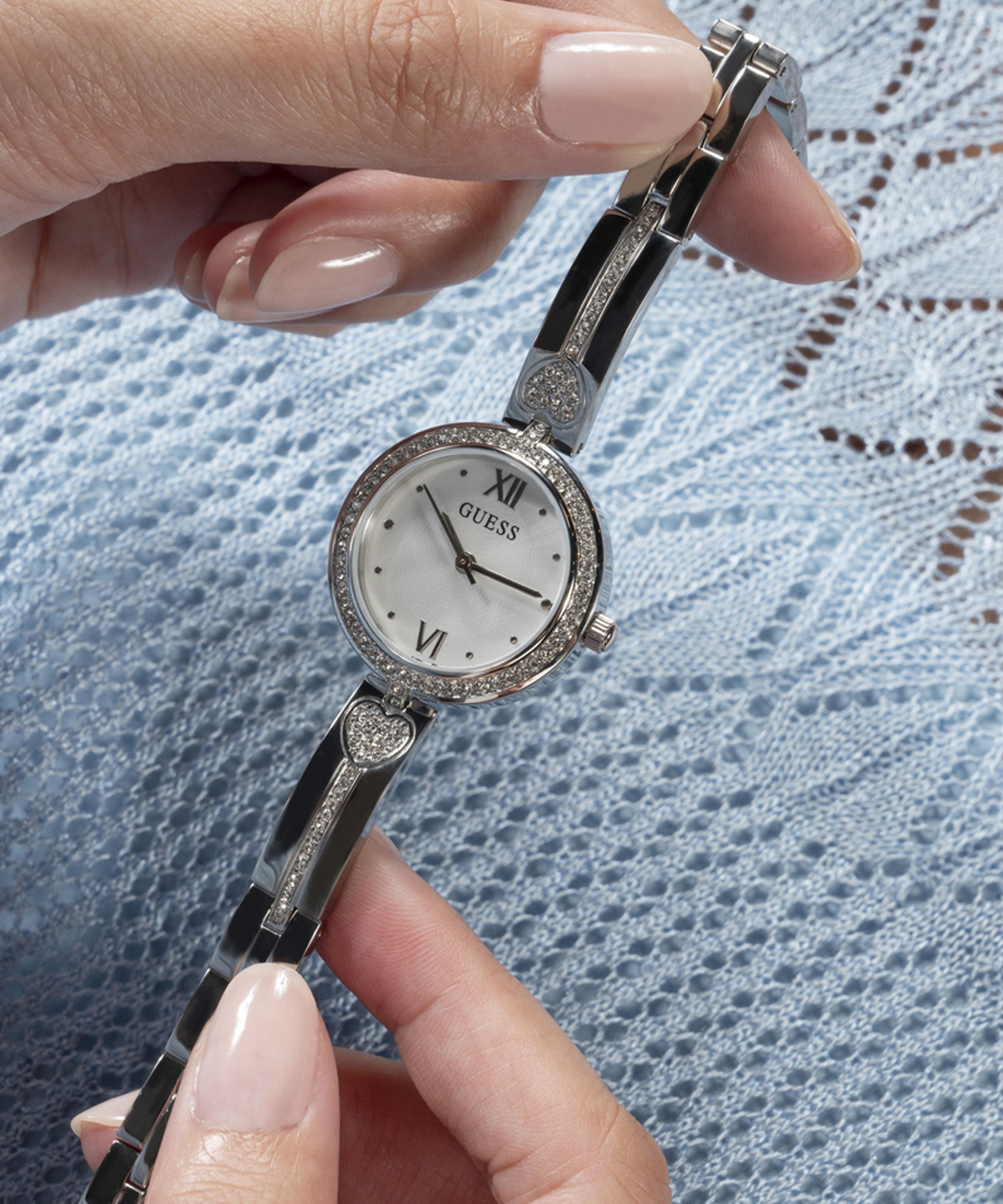 Жіночий годинник GW0655L1 поєднує у собі ніжні, витончені штрихи дизайну та функціональність і практичність японського кварцового механізму. Сталеві корпус та браслет. Безель прикрашений мерехтливим камінням, котре ніби перегукуєтсья з мітками часу. Перламутровий аналоговий циферблат захищений мінеральним склом. Водозахист 3 АТМ.