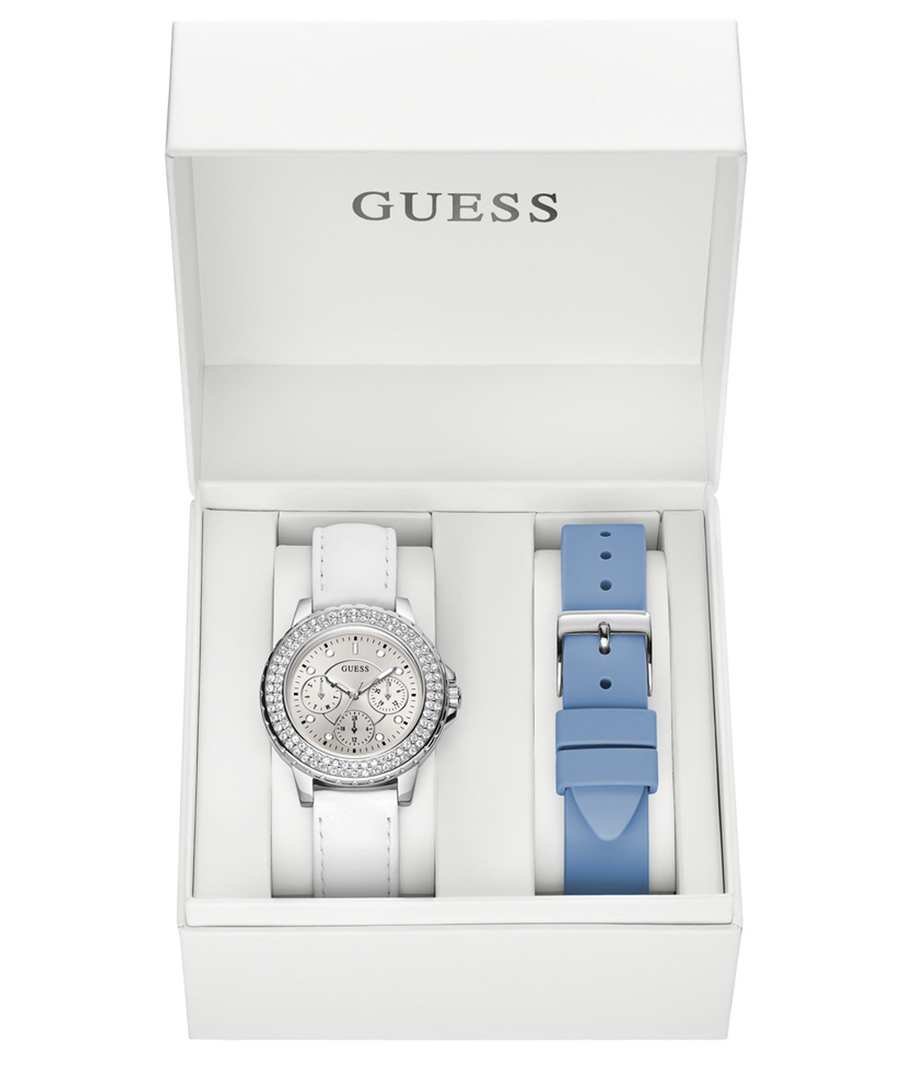 Годинник жіночий GW0660L1 з надійним кварцевим механізмом Мійота. Сталевий корпус діаметром 36 мм. Аксесуар комплектується двума ремінцями, котрі Ви легко можете змінити відповідно до настрою. Білий шкіряний ремінець та небесно - блакитний силіконовий зможуть доповнити будь - який образ, котрий прийде Вам довподоби!