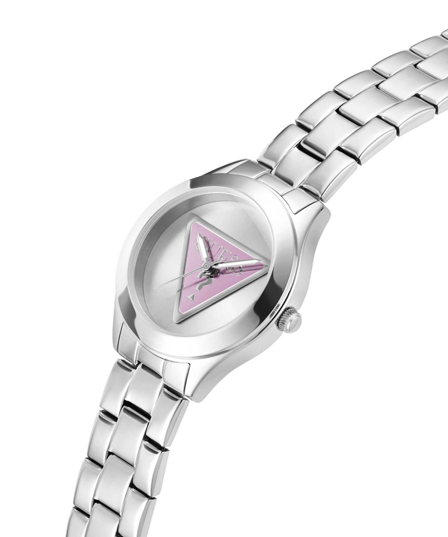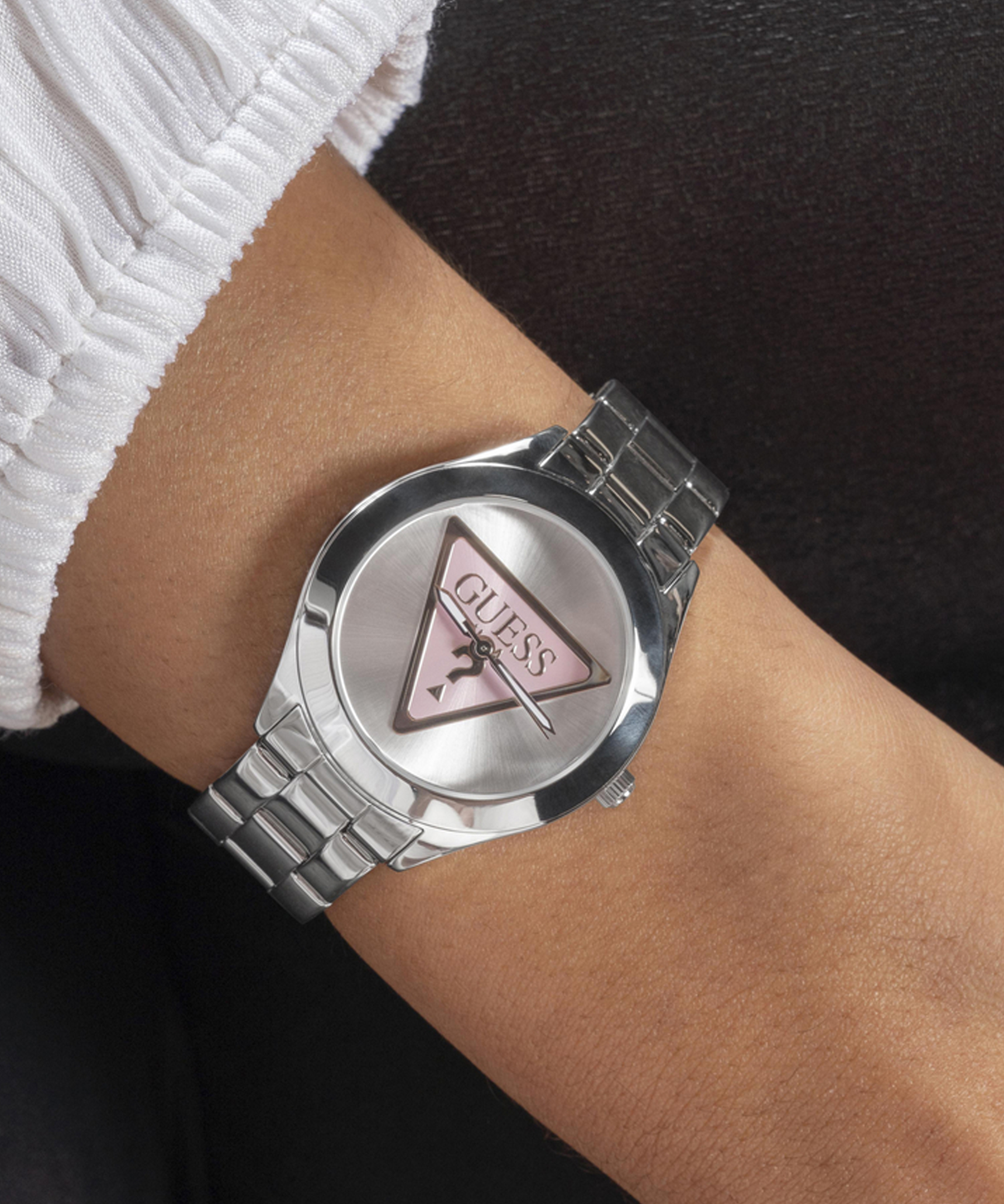 Жіночий наручний годинник американського бренду GUESS GW0675L1 з надійним кварцевим механізмом Мійота. Сталеві корпус та браслет. Браслет з класичною застібкою - складною кліпсою. Діаметр корпусу - 34 мм. Головна особливість моделі - лаконічний дизайн та логотип бренда, розміщений на аналоговому циферблаті. Водозахист - 3 АТМ.