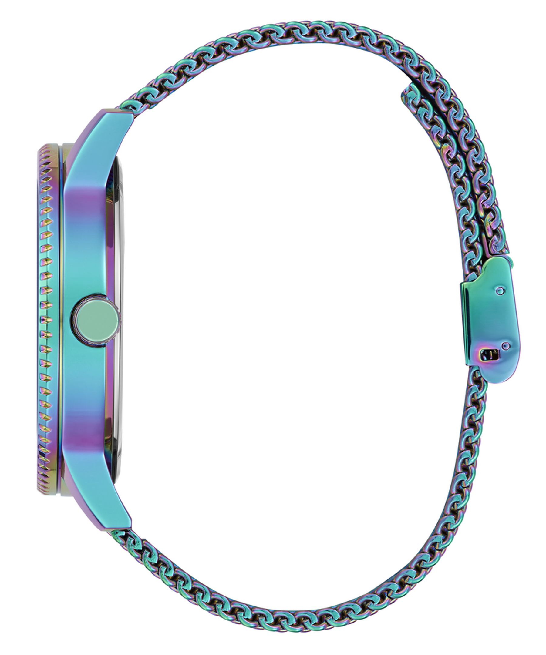 Браслет із нержавіючої сталі з міланським плетінням та іридисцентним покриттям забезпечує комфортне прилягання до зап'ястя та надійну фіксацію завдяки розкладній застібці.