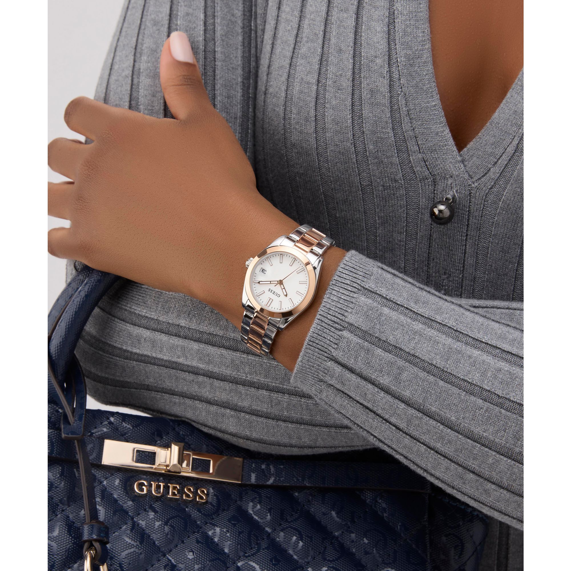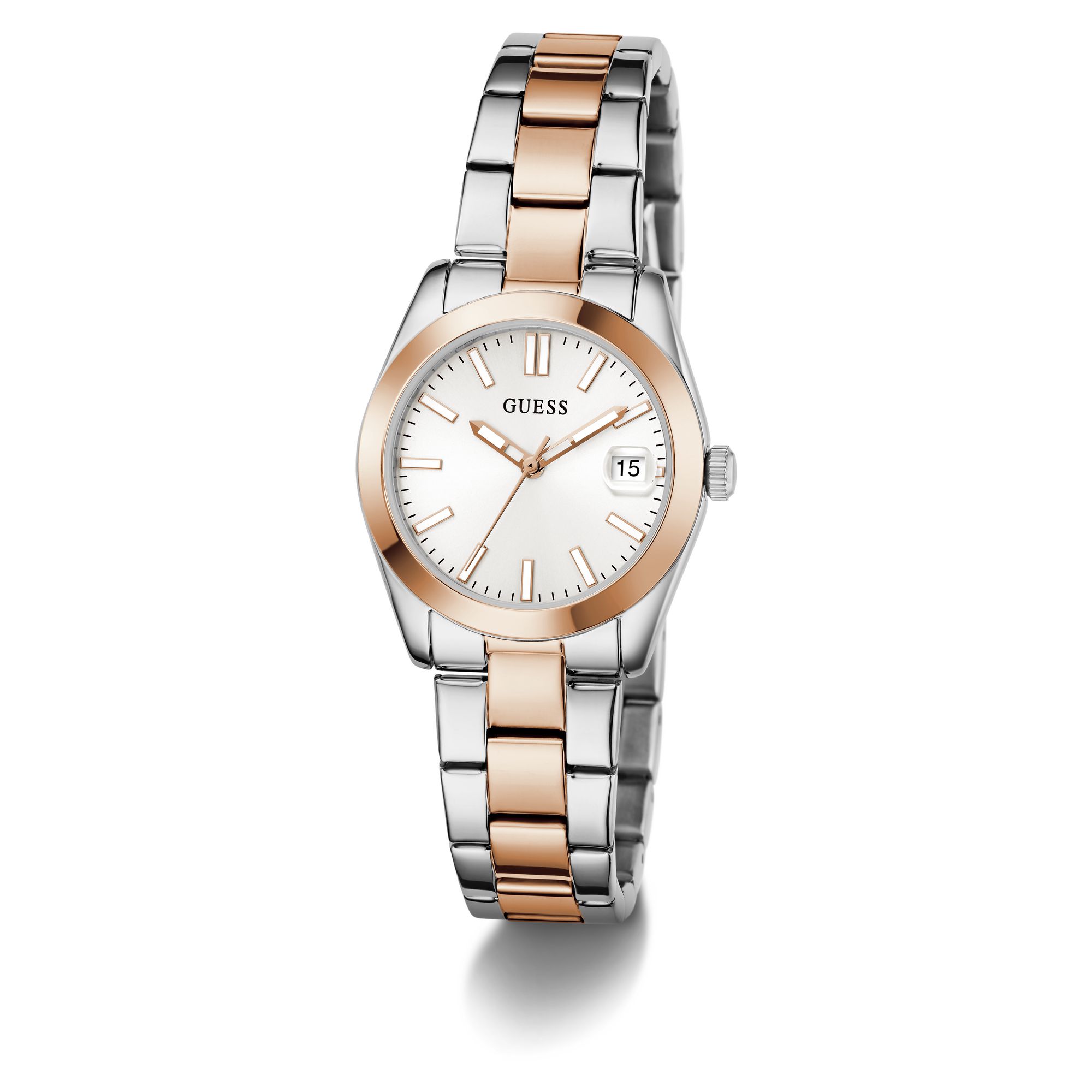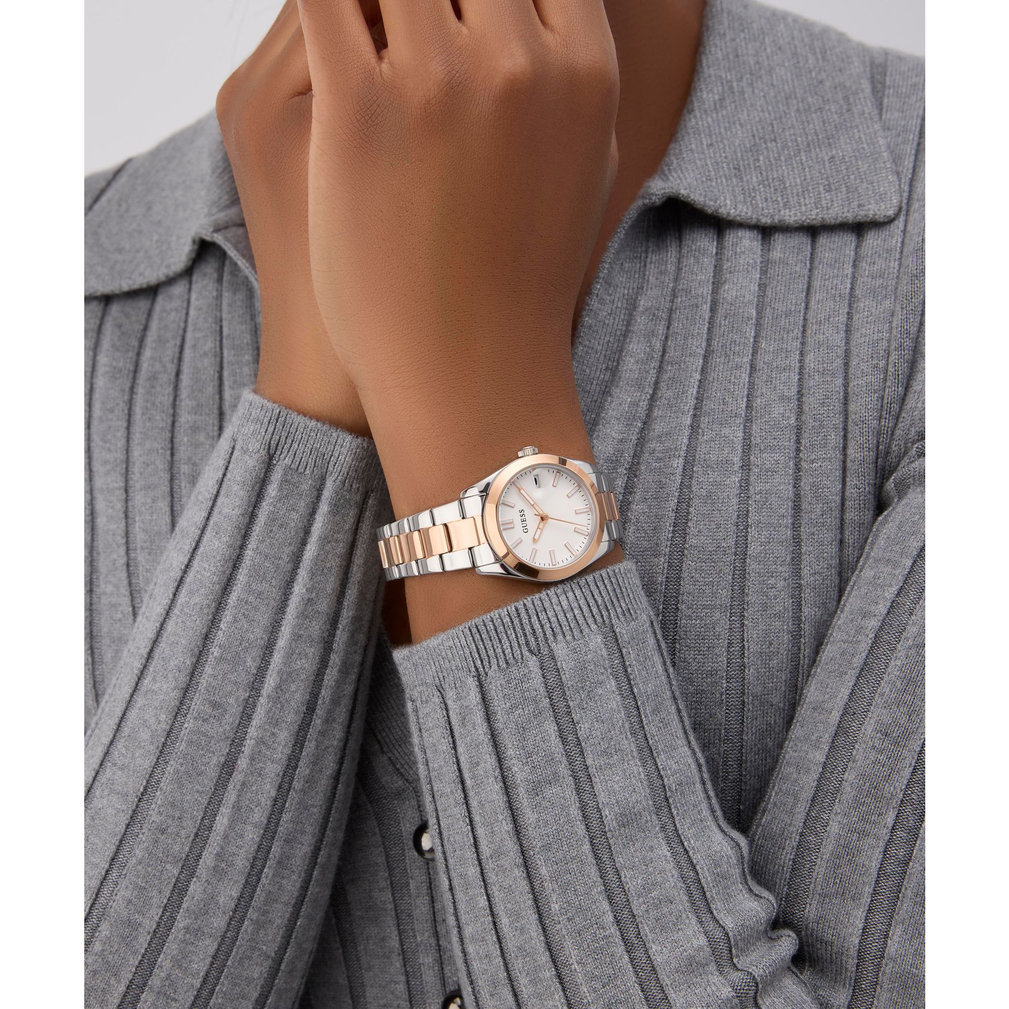 🔹 Корпус: діаметр 32 мм, двоколірний — сріблястий та рожеве золото, полірована сталь.