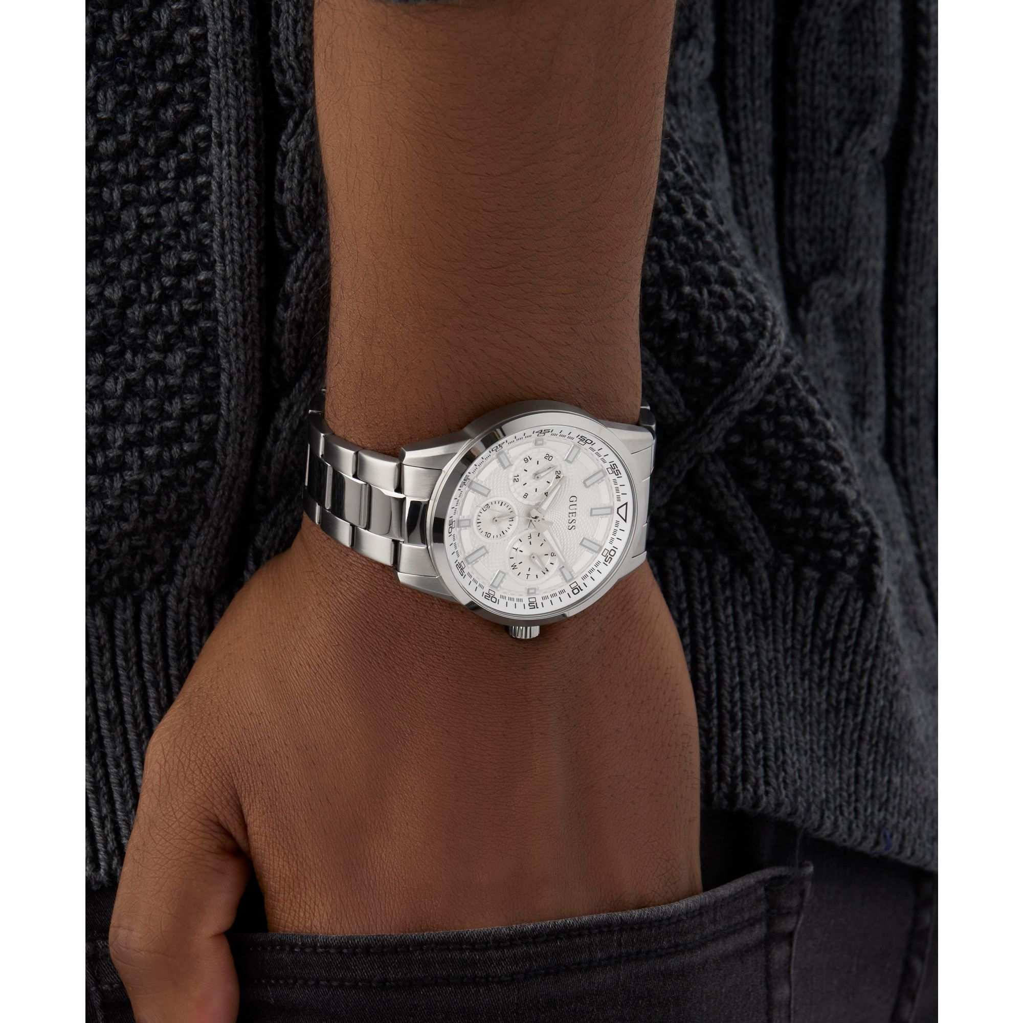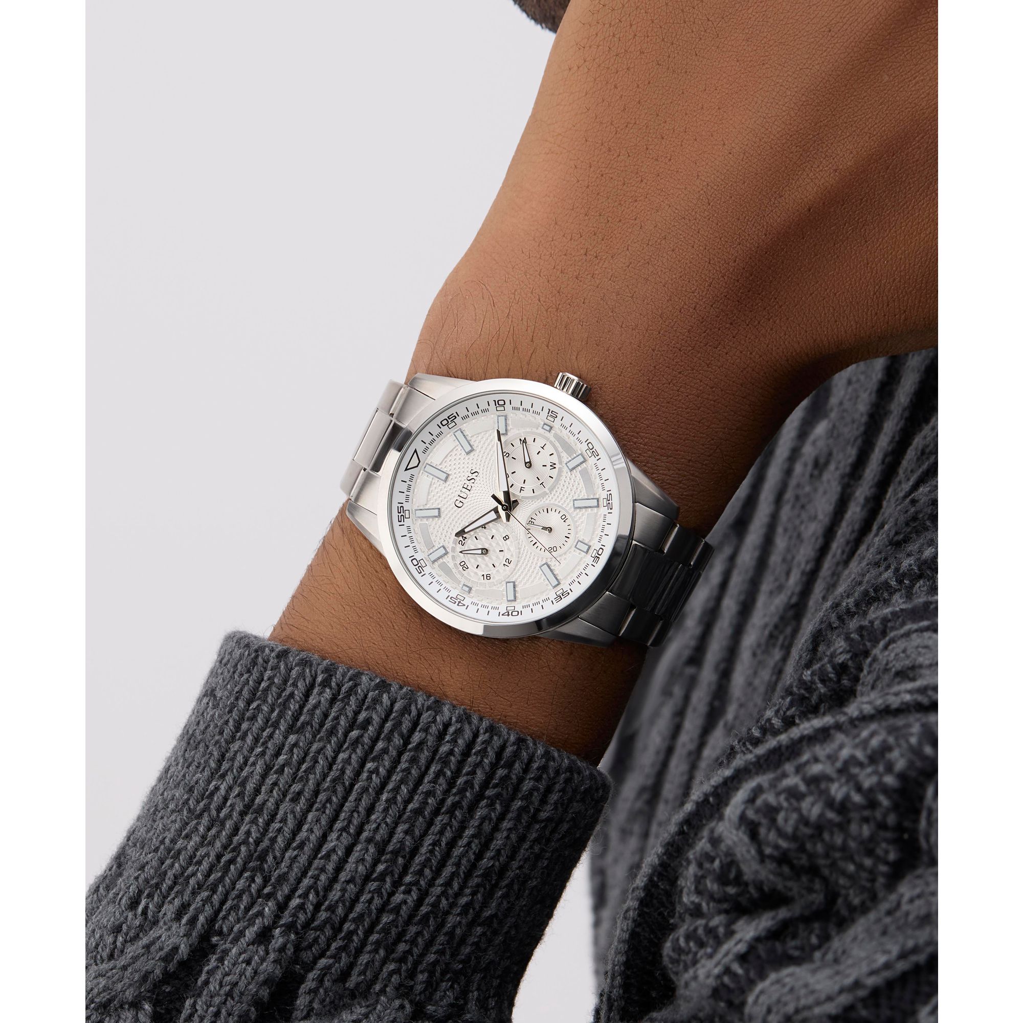🔹 Циферблат: сріблястий із багатофункціональним механізмом та текстурованими деталями.