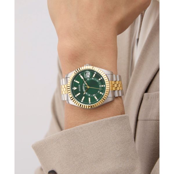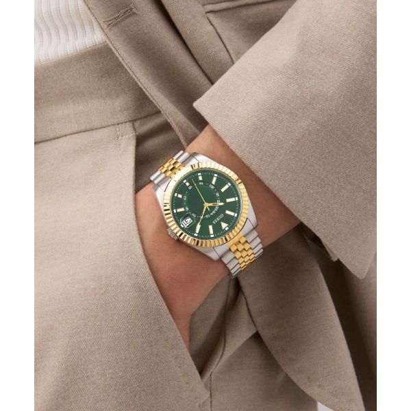 Чоловічий годинник GUESS Two-Tone Green Sunray-це елегантний годинник поєднує класичну вишуканість із сучасним дизайном, створюючи бездоганний образ для будь-якої нагоди.