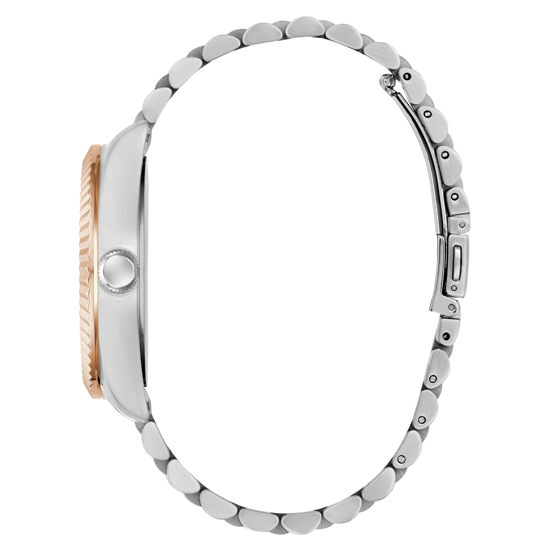 🔹 Корпус: 42 мм, двоколірний — сріблястий та рожеве золото, із поєднанням матової та полірованої переробленої сталі.