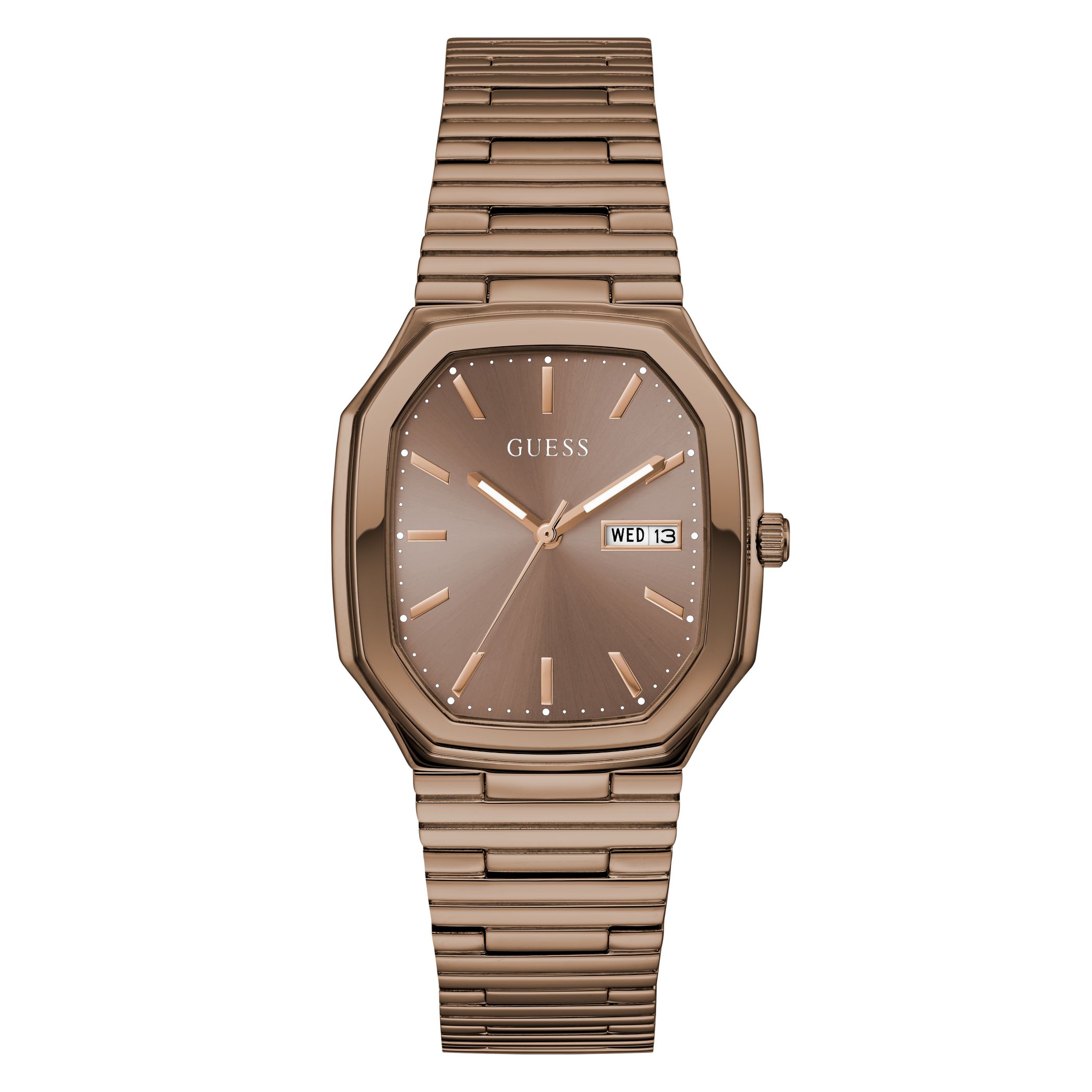 🔹 Корпус: прямокутний, 38 × 35 мм, у кавовому тоні з полірованої переробленої сталі.
