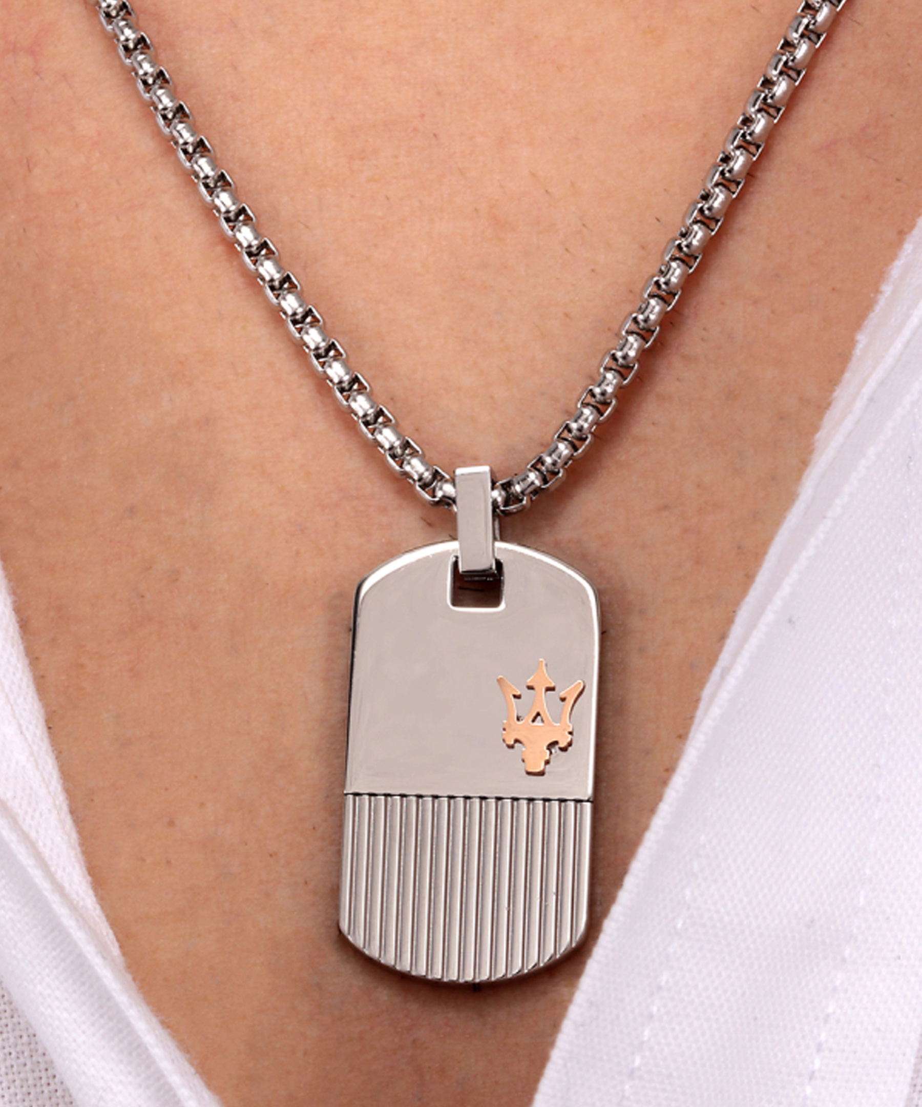 Оригінальний ланцюжок для чоловіків - колекція ICONIC відомого італійського бренду MASERATI. Ланцюжок і кулон з тризубом - логотипом бренду виготовлені зі сталі 316L. Довжина ланцюжка 60 см.